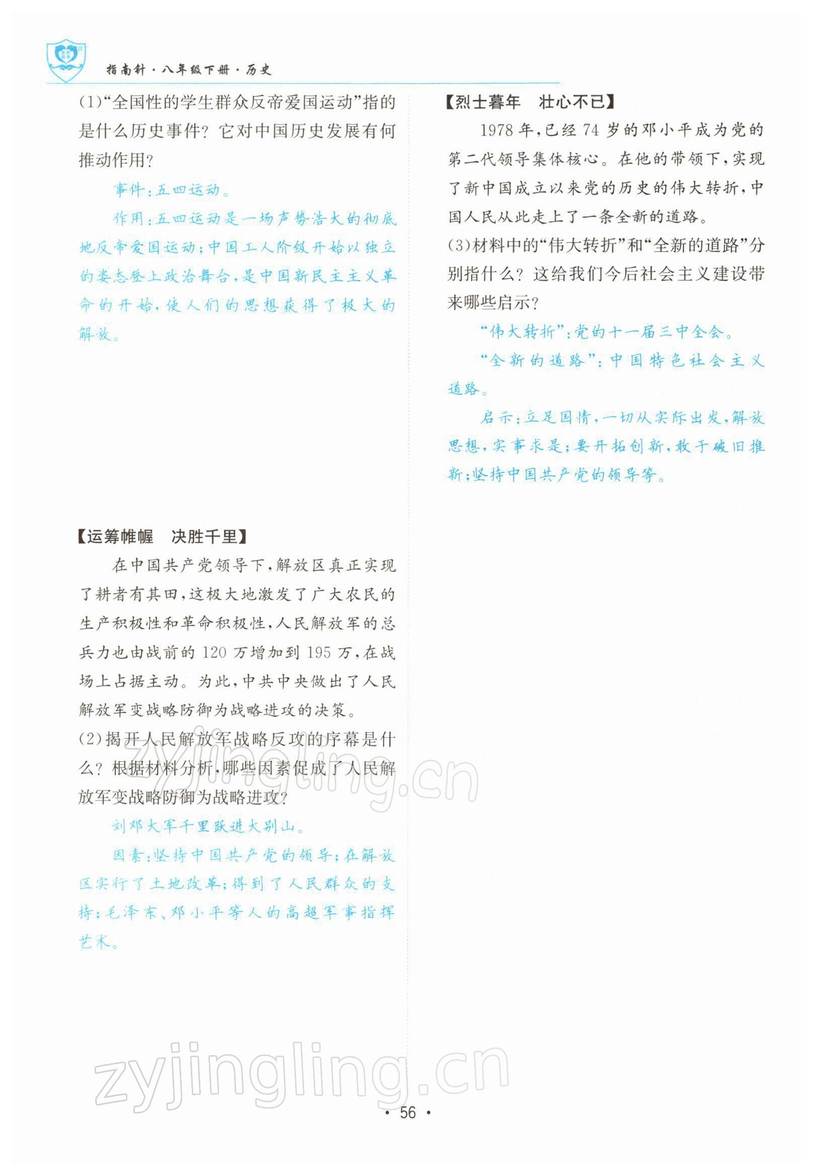 注:目前有些书本章节名称可能整理的还不是很完善,但都是按照顺序排列的,请同学们按照顺序仔细查找。练习册 2022年指南针导学探究八年级历史下册人教版 答案主要是用来给同学们做完题方便对答案用的,请勿直接抄袭。