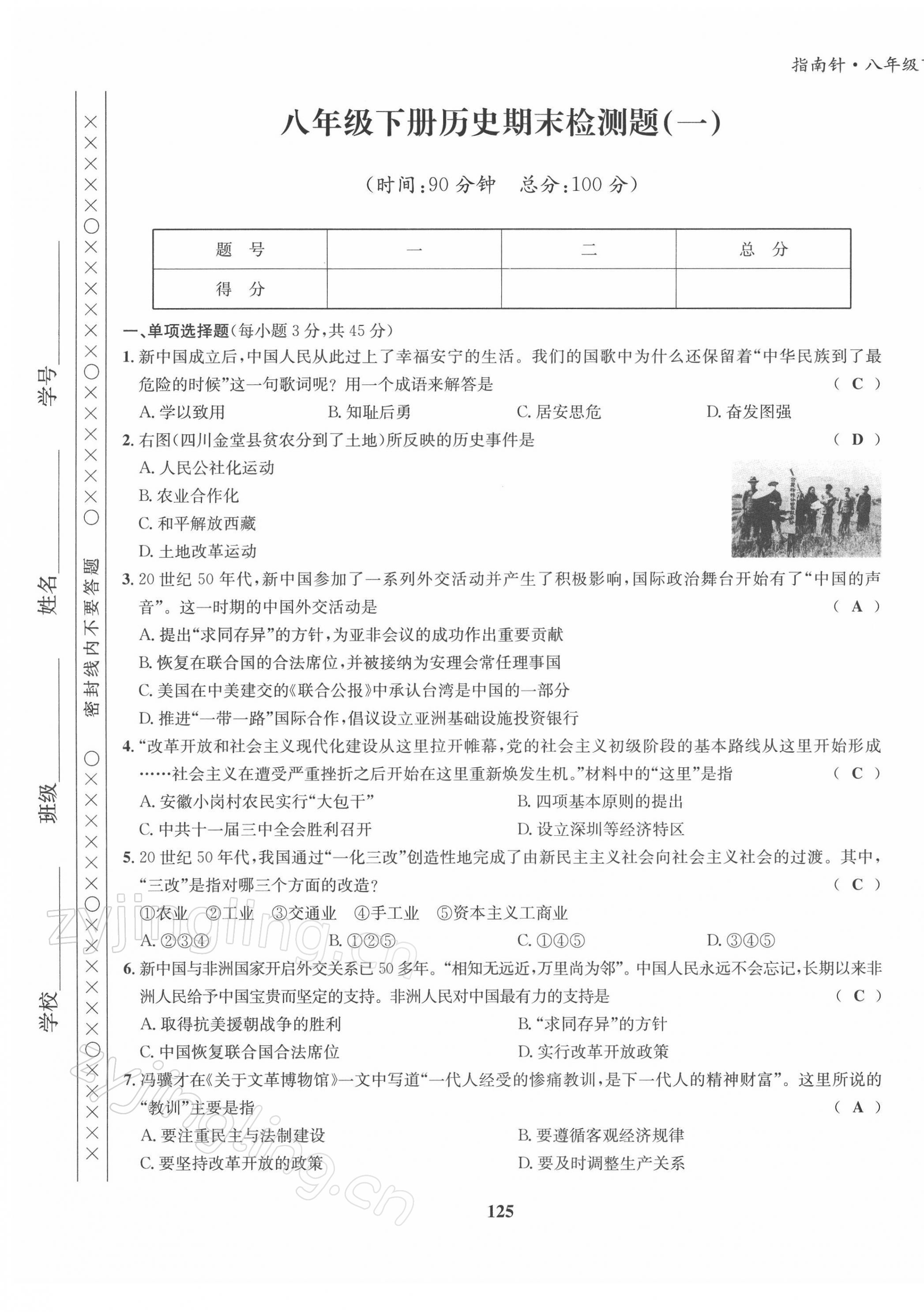 注:目前有些书本章节名称可能整理的还不是很完善,但都是按照顺序排列的,请同学们按照顺序仔细查找。练习册 2022年指南针导学探究八年级历史下册人教版 答案主要是用来给同学们做完题方便对答案用的,请勿直接抄袭。
