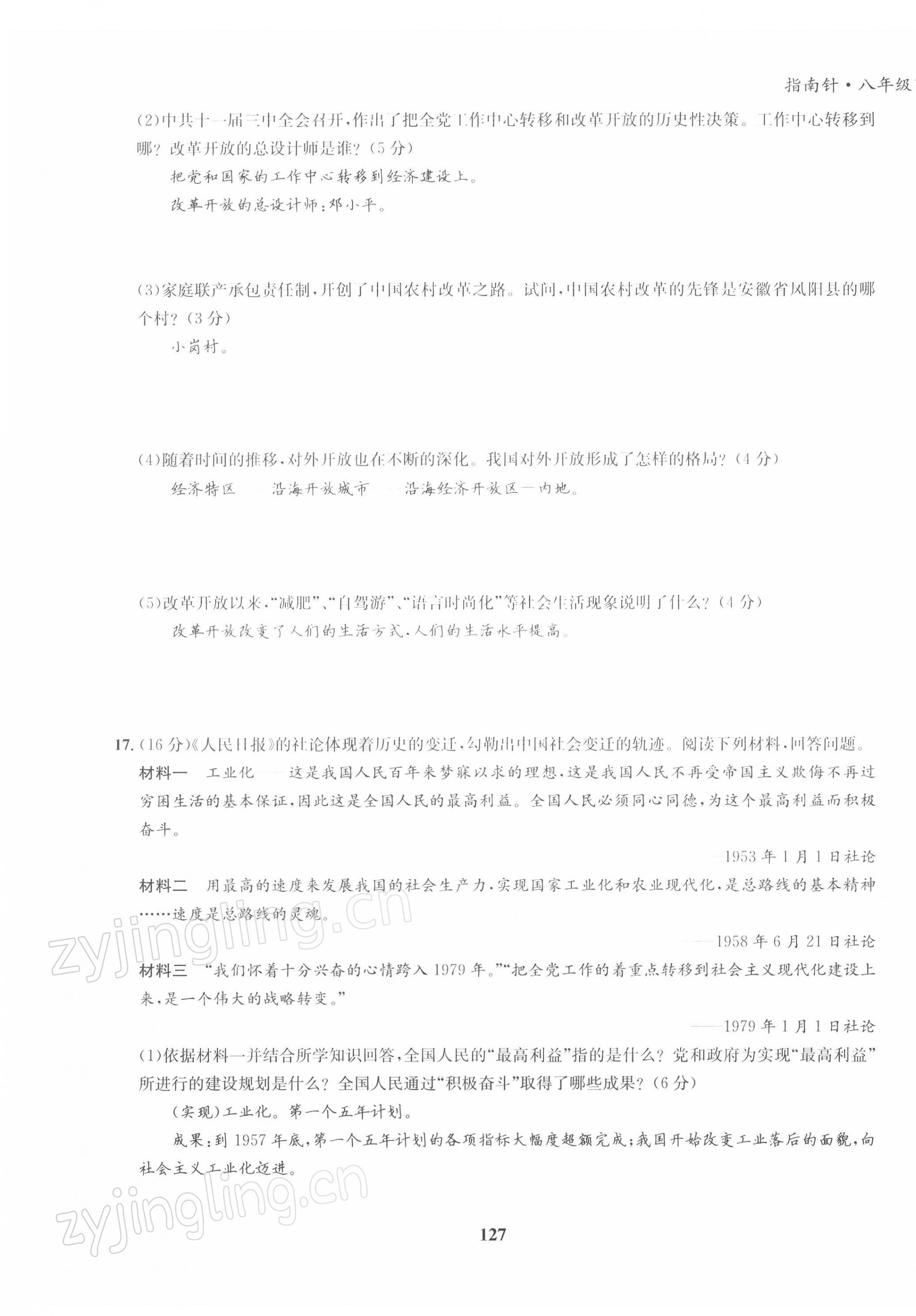 注:目前有些书本章节名称可能整理的还不是很完善,但都是按照顺序排列的,请同学们按照顺序仔细查找。练习册 2022年指南针导学探究八年级历史下册人教版 答案主要是用来给同学们做完题方便对答案用的,请勿直接抄袭。