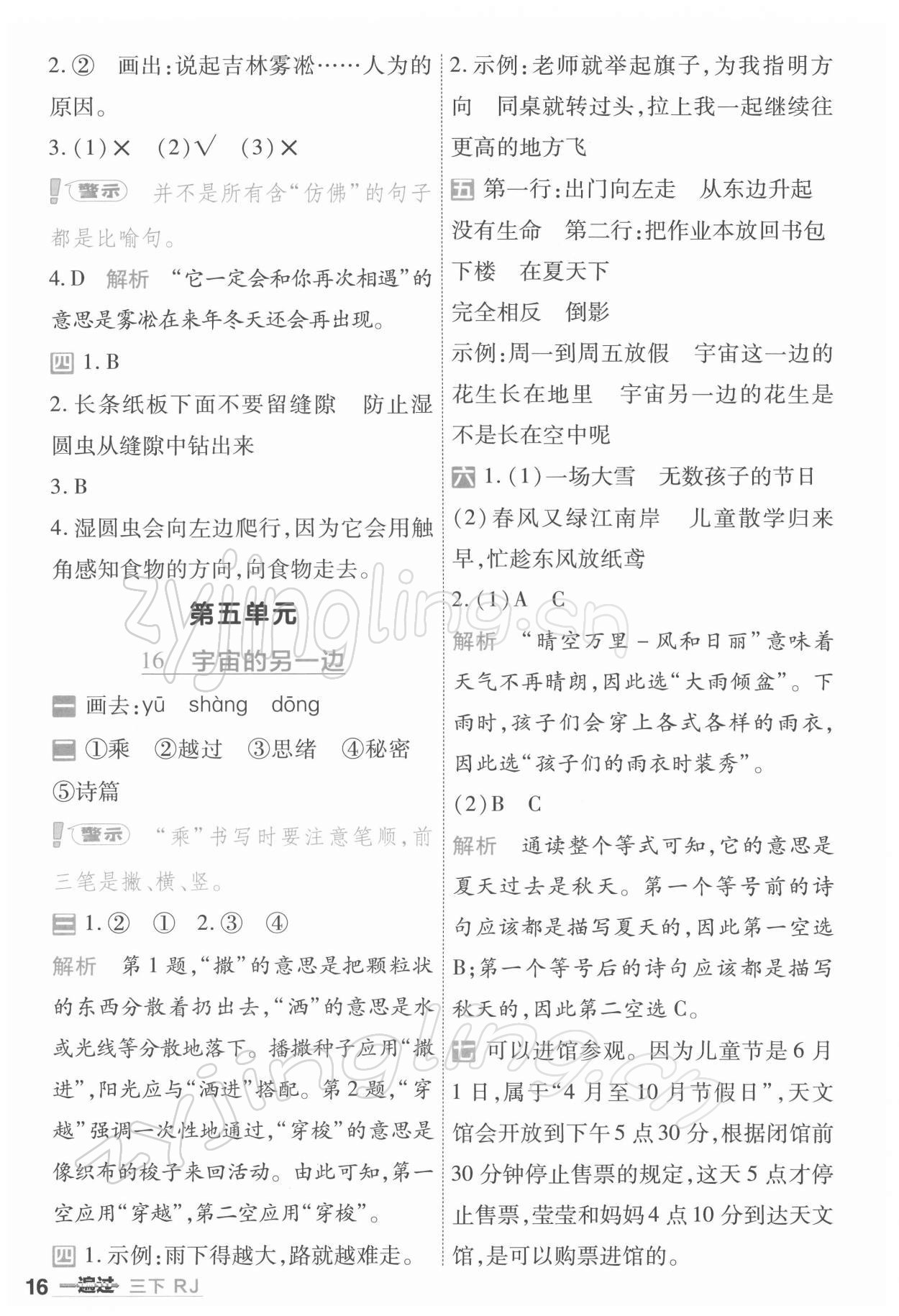 注:目前有些书本章节名称可能整理的还不是很完善,但都是按照顺序排列的,请同学们按照顺序仔细查找。练习册 2022年一遍过三年级语文下册人教版浙江专版 答案主要是用来给同学们做完题方便对答案用的,请勿直接抄袭。