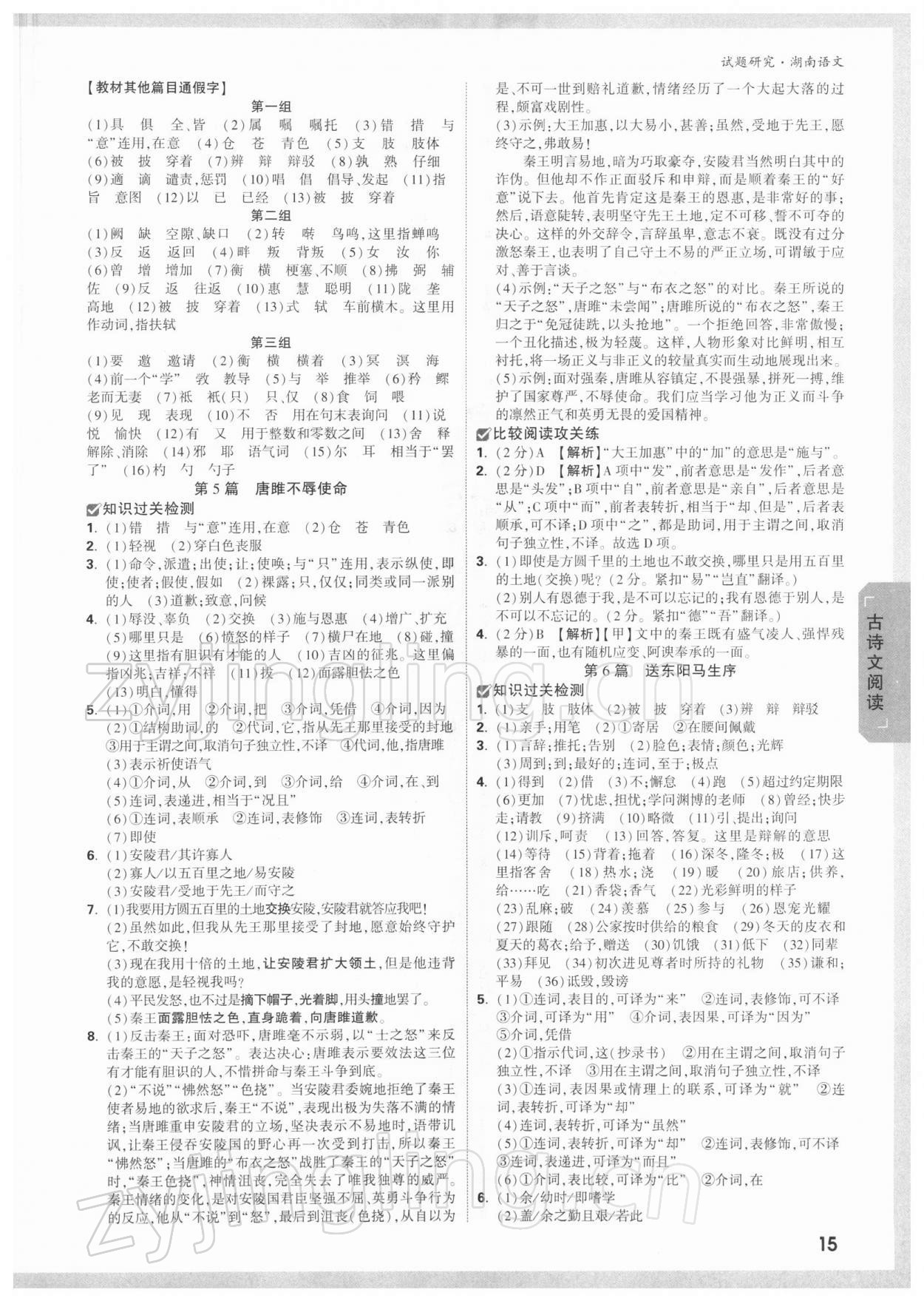 2022年万唯中考试题研究语文湖南专版