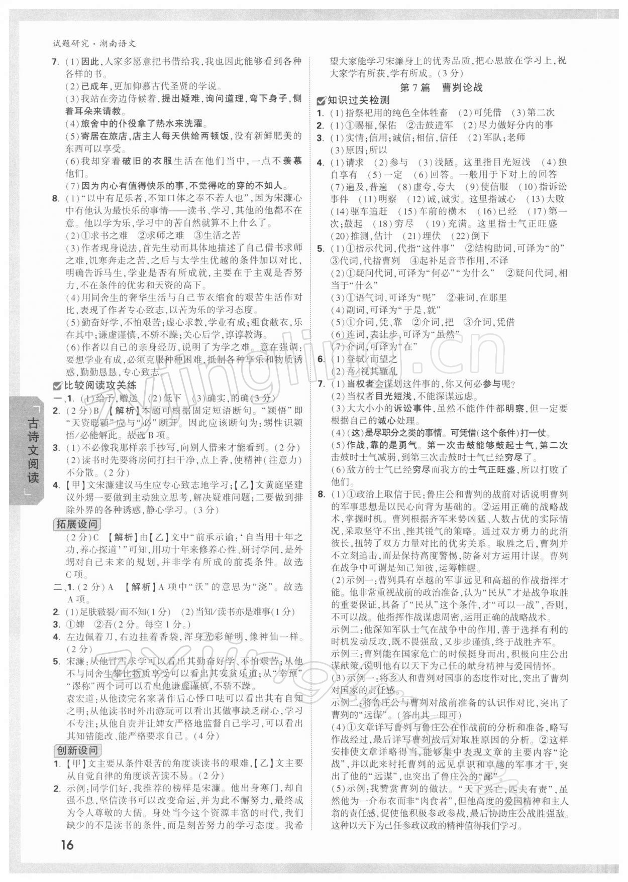 2022年万唯中考试题研究语文湖南专版