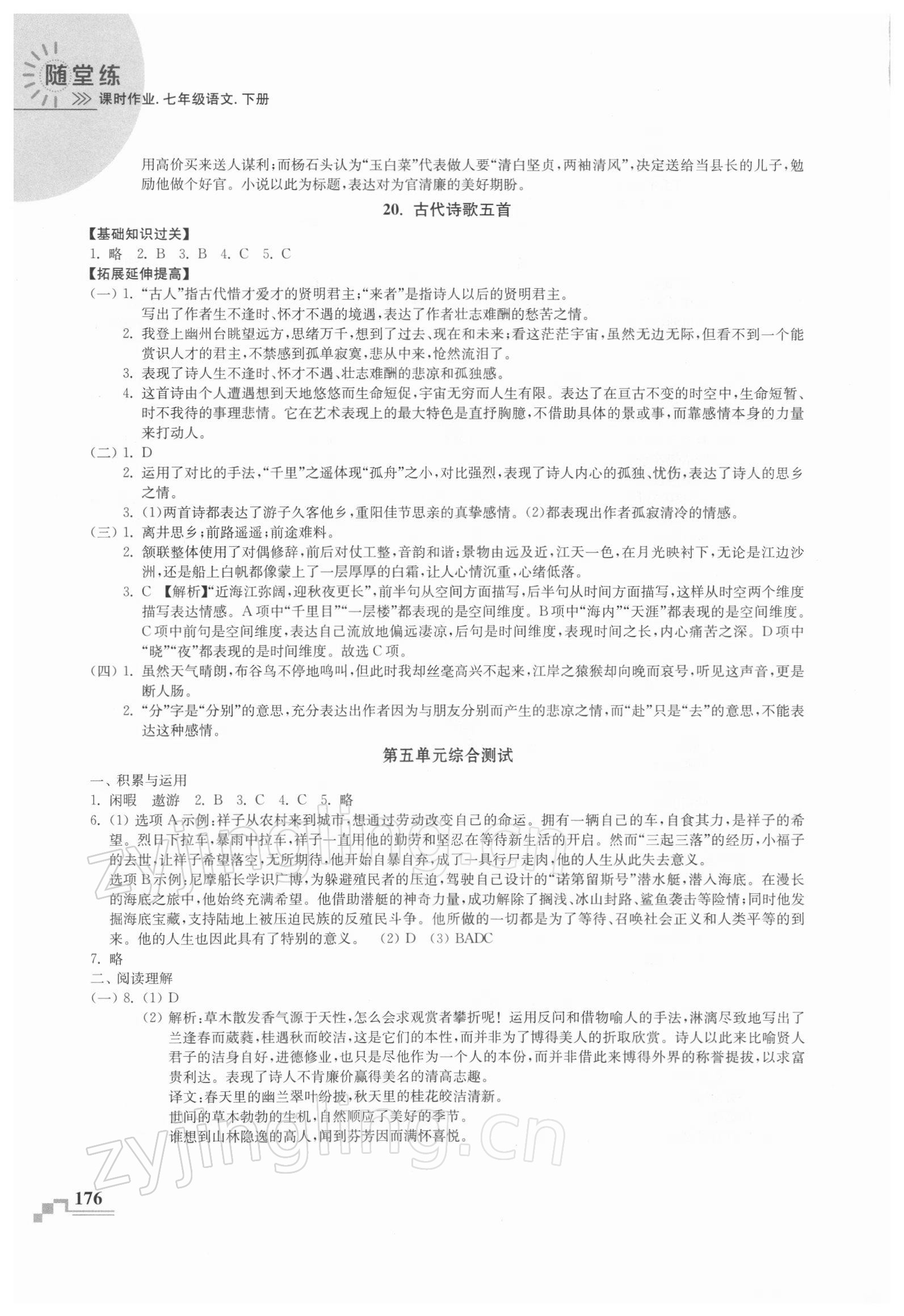 注:目前有些书本章节名称可能整理的还不是很完善,但都是按照顺序排列的,请同学们按照顺序仔细查找。练习册 2022年随堂练课时作业七年级语文下册人教版 答案主要是用来给同学们做完题方便对答案用的,请勿直接抄袭。