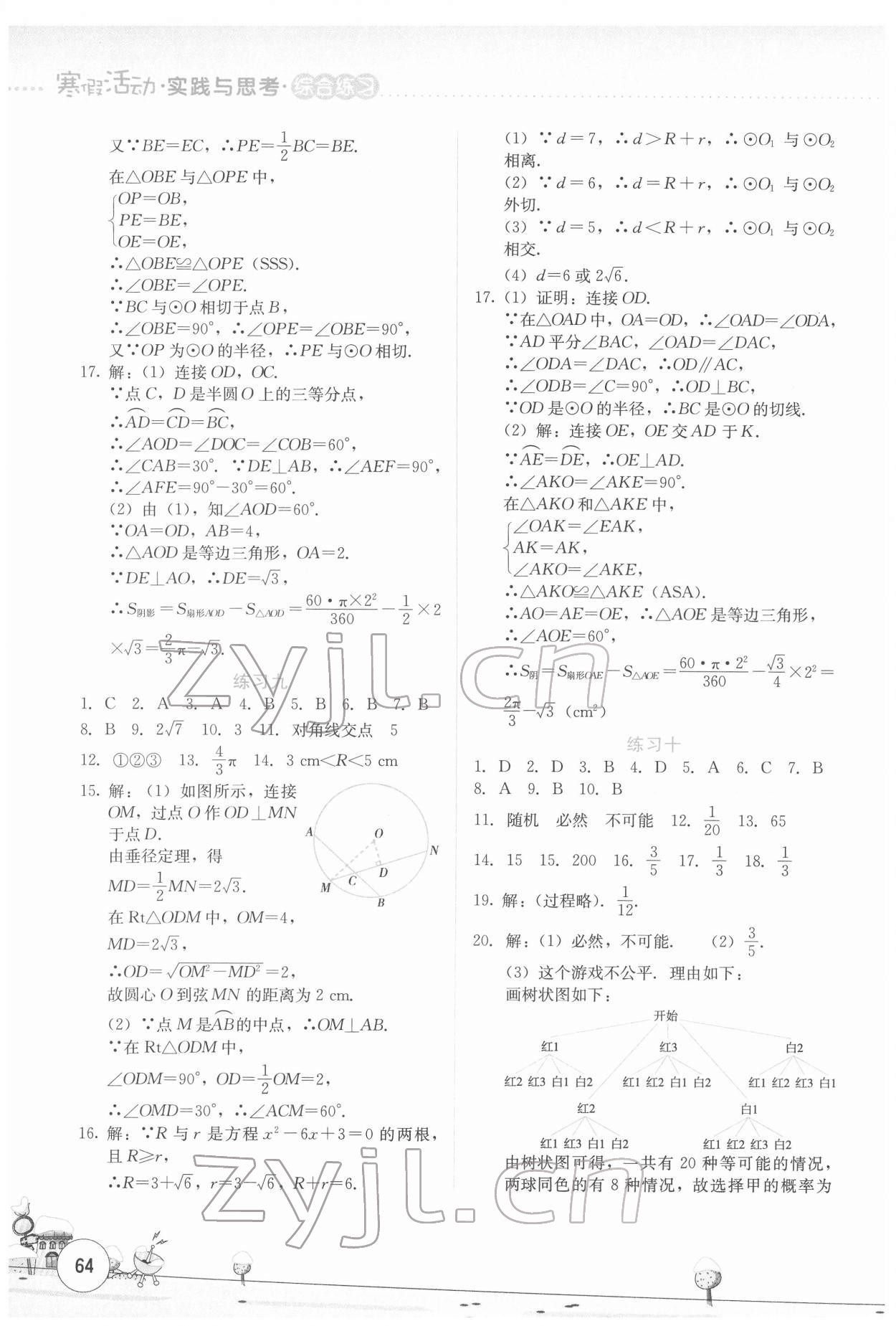 《2022年寒假活动实践与思考云南大学出版社九年级数学综合练习》