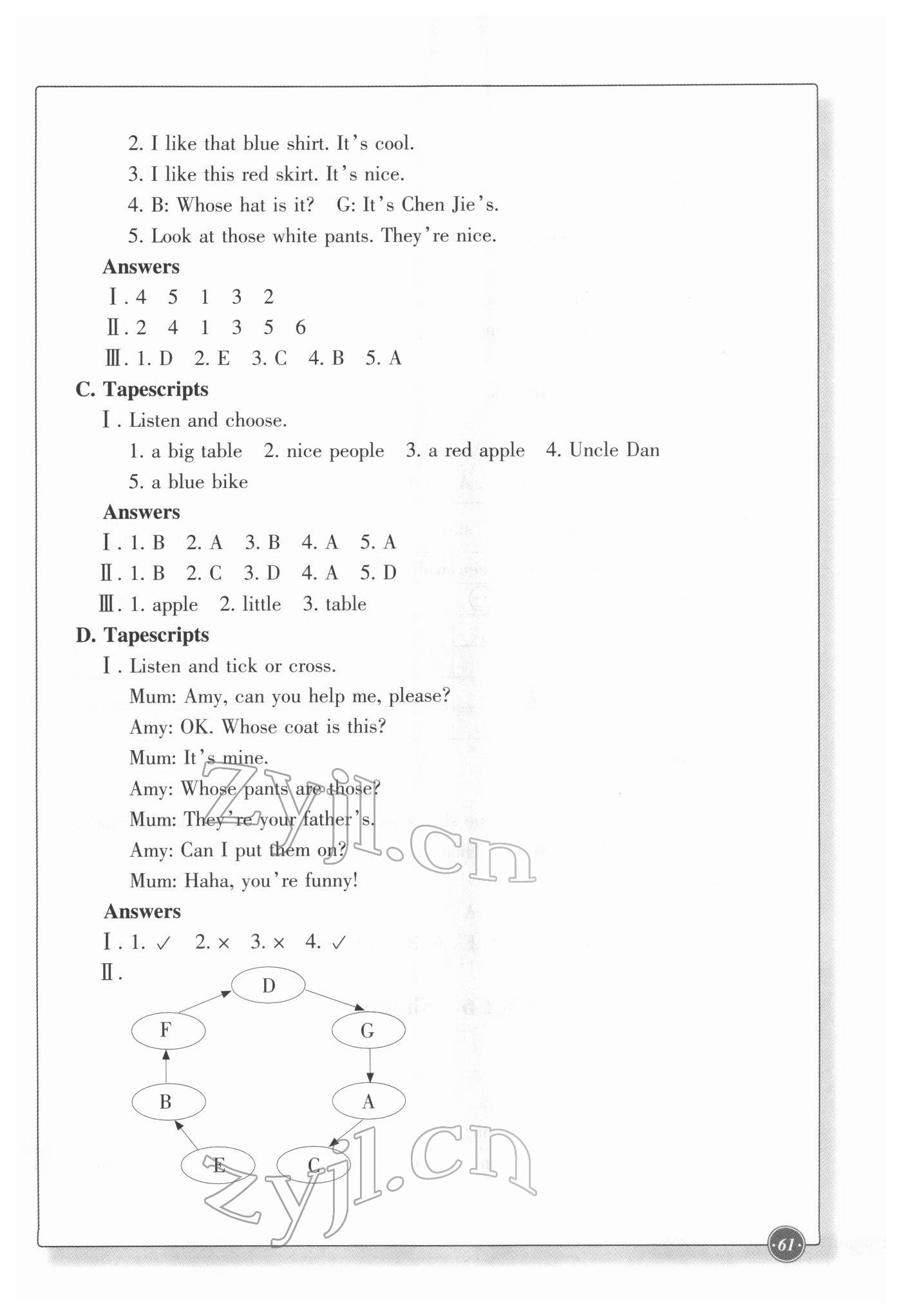 注:目前有些书本章节名称可能整理的还不是很完善,但都是按照顺序排列的,请同学们按照顺序仔细查找。练习册 2022年同步练习浙江教育出版社四年级英语下册人教版 答案主要是用来给同学们做完题方便对答案用的,请勿直接抄袭。