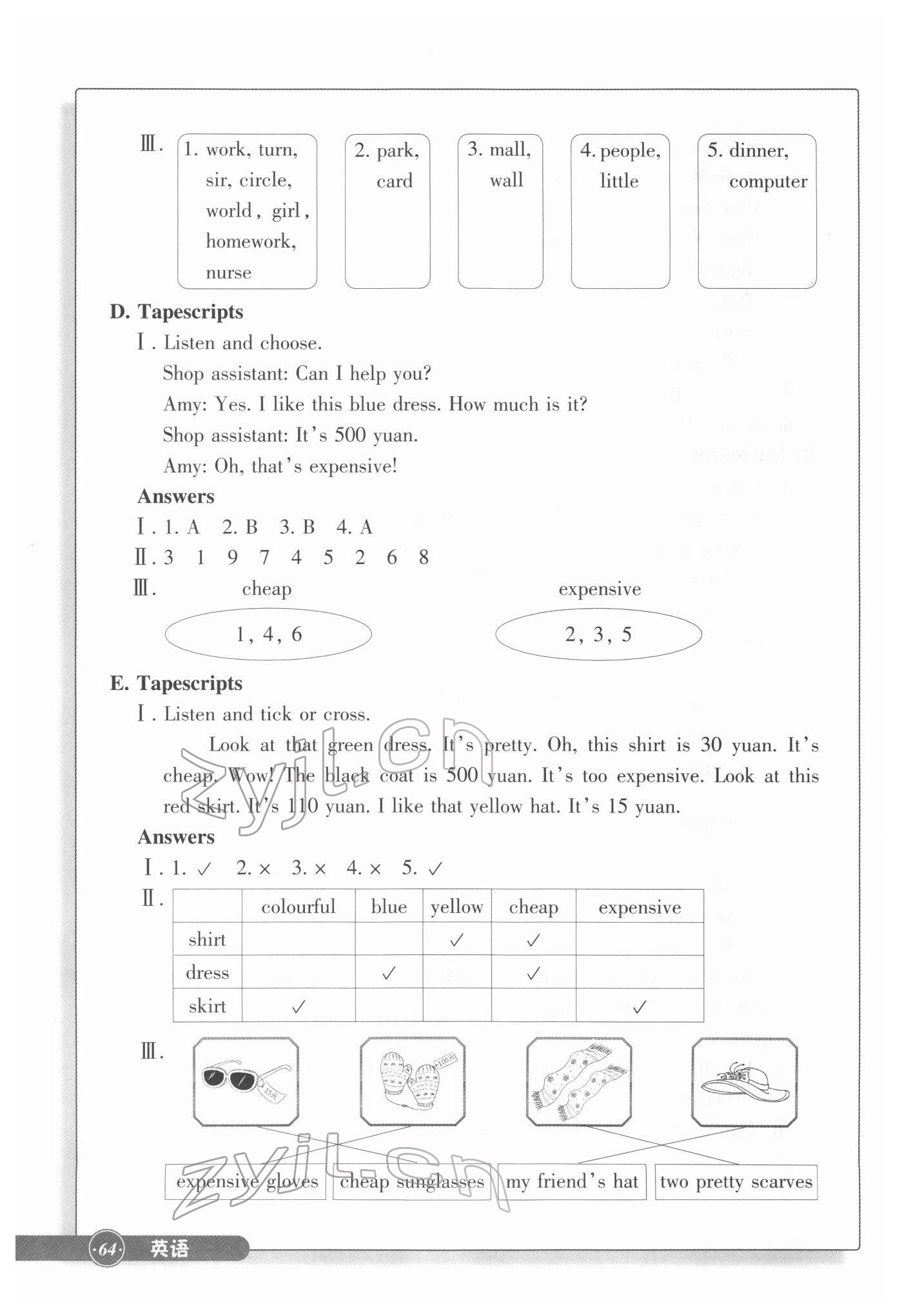 注:目前有些书本章节名称可能整理的还不是很完善,但都是按照顺序排列的,请同学们按照顺序仔细查找。练习册 2022年同步练习浙江教育出版社四年级英语下册人教版 答案主要是用来给同学们做完题方便对答案用的,请勿直接抄袭。