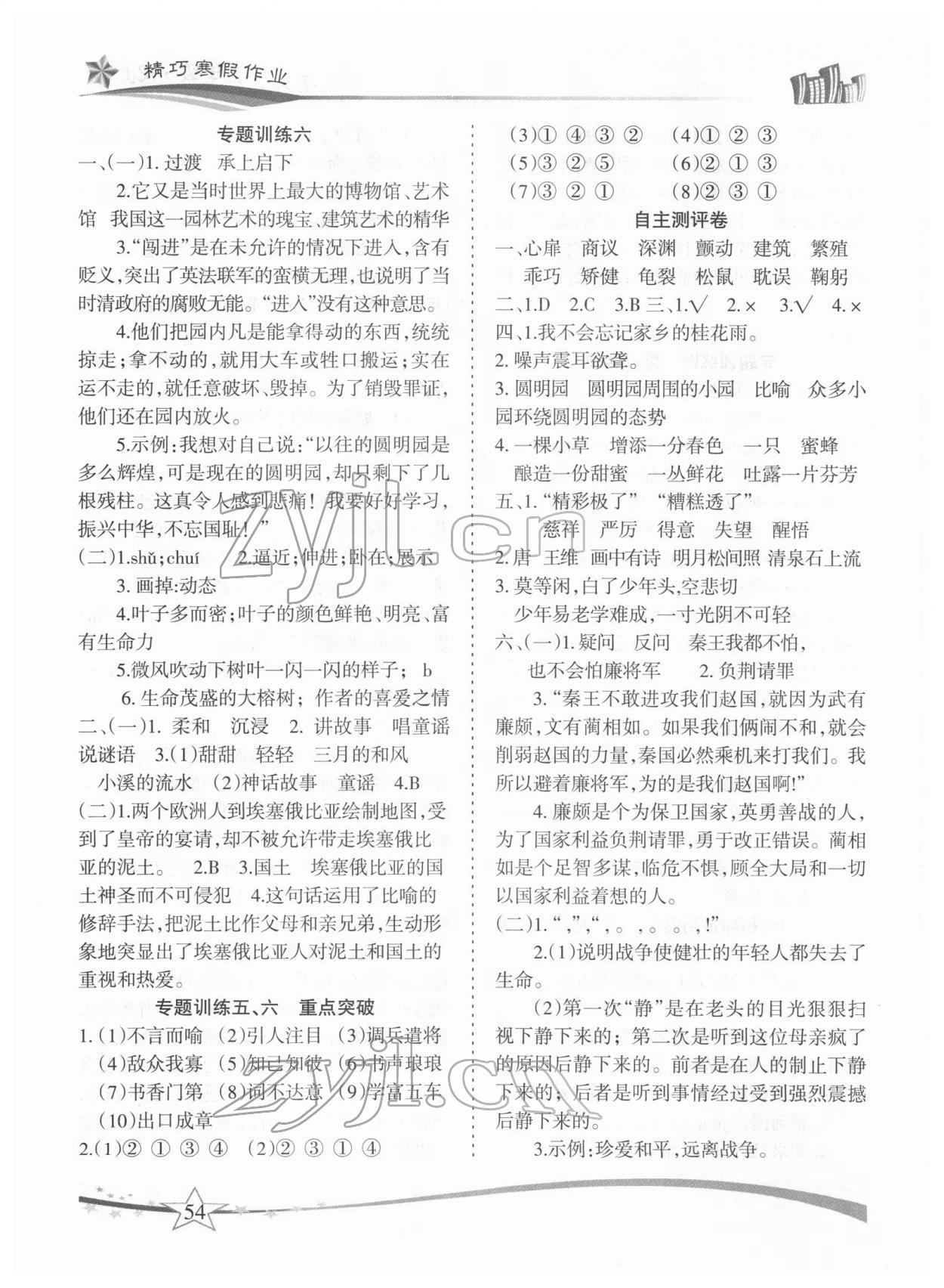2022年精巧寒假作业云五年级语文人教版南美术出版社