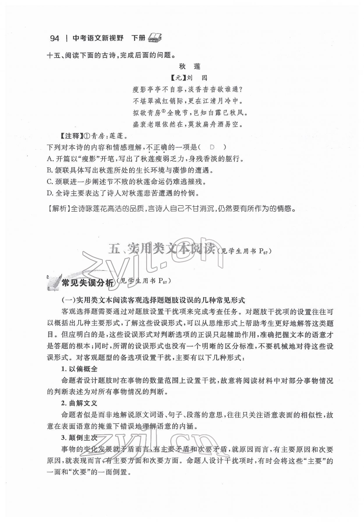 注:目前有些书本章节名称可能整理的还不是很完善,但都是按照顺序排列的,请同学们按照顺序仔细查找。练习册 2022年中考新视野九年级语文下册中考用书人教版 答案主要是用来给同学们做完题方便对答案用的,请勿直接抄袭。