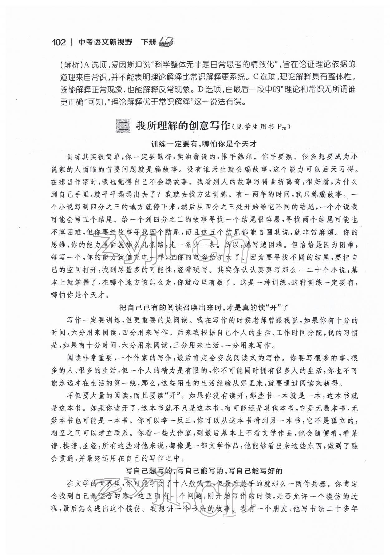 注:目前有些书本章节名称可能整理的还不是很完善,但都是按照顺序排列的,请同学们按照顺序仔细查找。练习册 2022年中考新视野九年级语文下册中考用书人教版 答案主要是用来给同学们做完题方便对答案用的,请勿直接抄袭。