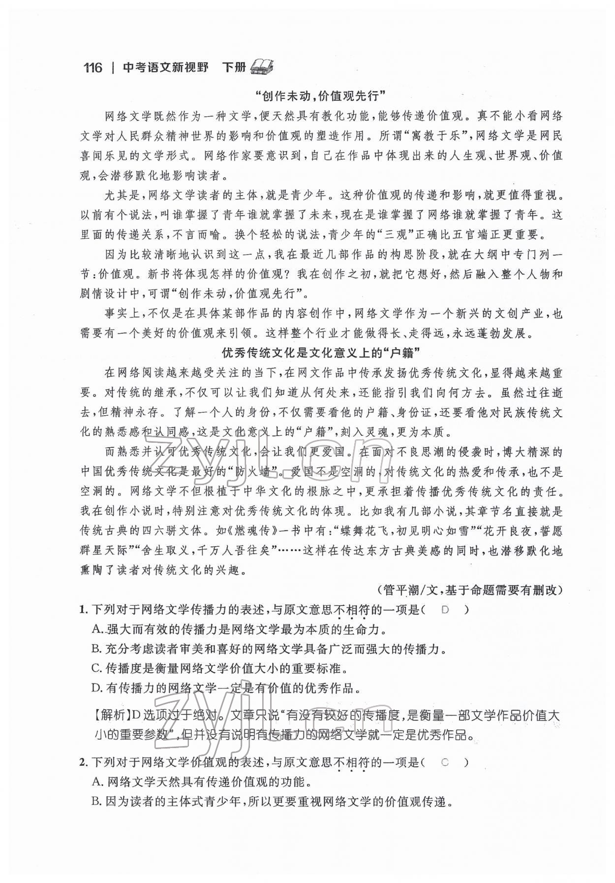 注:目前有些书本章节名称可能整理的还不是很完善,但都是按照顺序排列的,请同学们按照顺序仔细查找。练习册 2022年中考新视野九年级语文下册中考用书人教版 答案主要是用来给同学们做完题方便对答案用的,请勿直接抄袭。