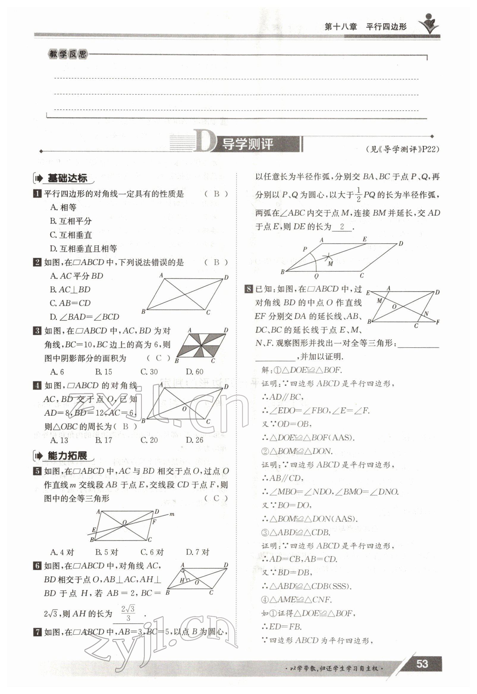 注:目前有些书本章节名称可能整理的还不是很完善,但都是按照顺序排列的,请同学们按照顺序仔细查找。练习册 2022年金太阳导学测评八年级数学下册人教版 答案主要是用来给同学们做完题方便对答案用的,请勿直接抄袭。