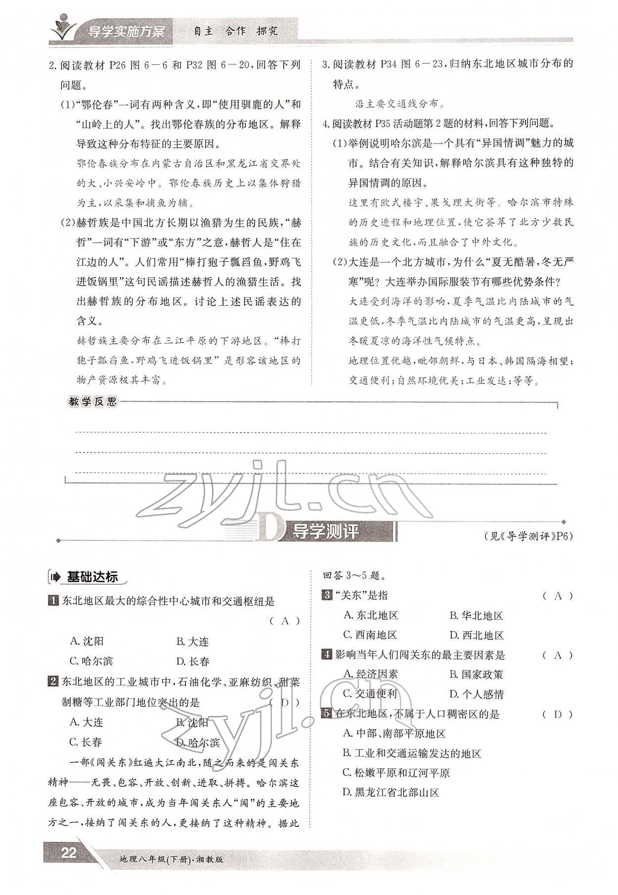 2022年金太阳导学测评八年级地理下册湘教版
