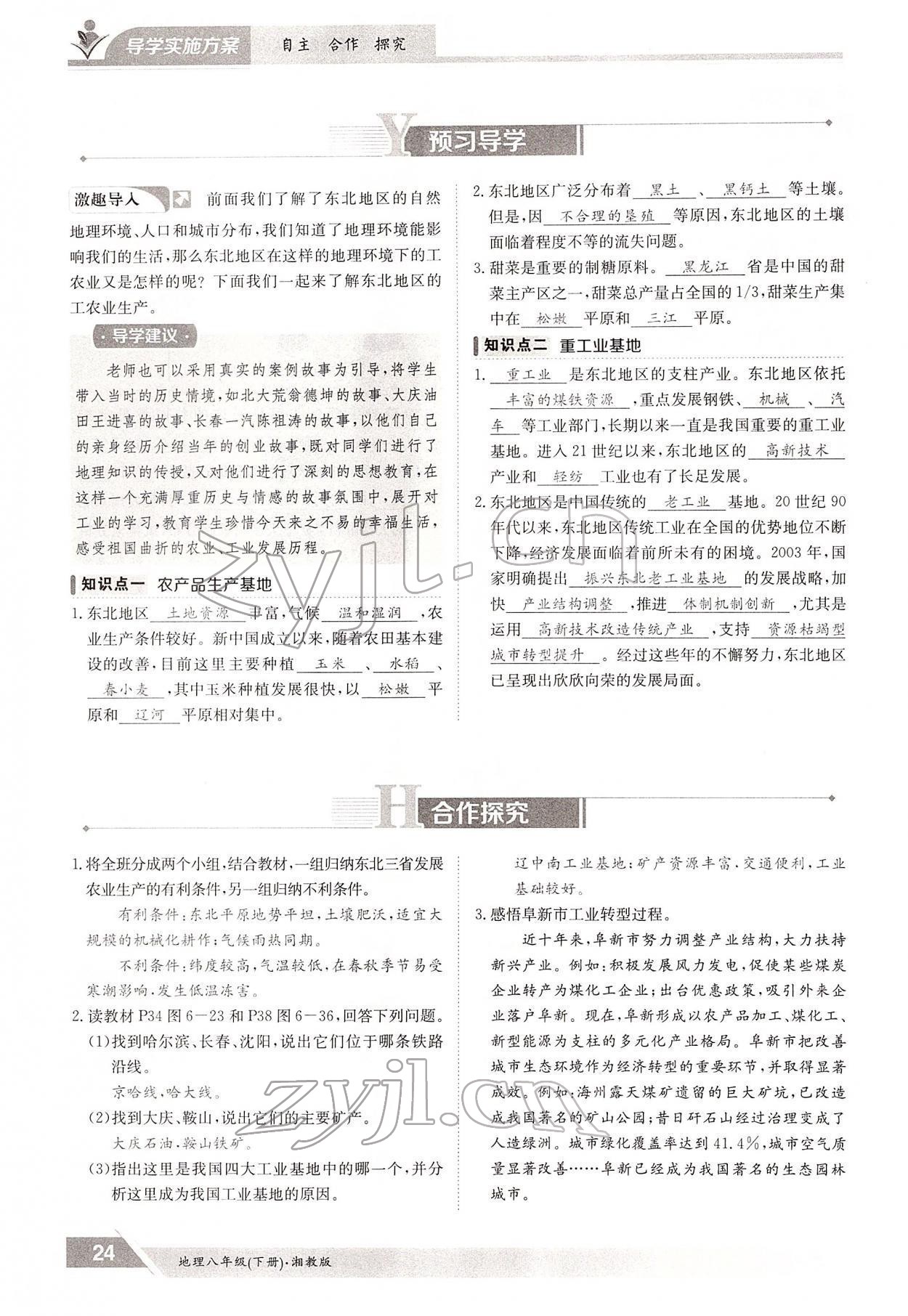 2022年金太阳导学测评八年级地理下册湘教版