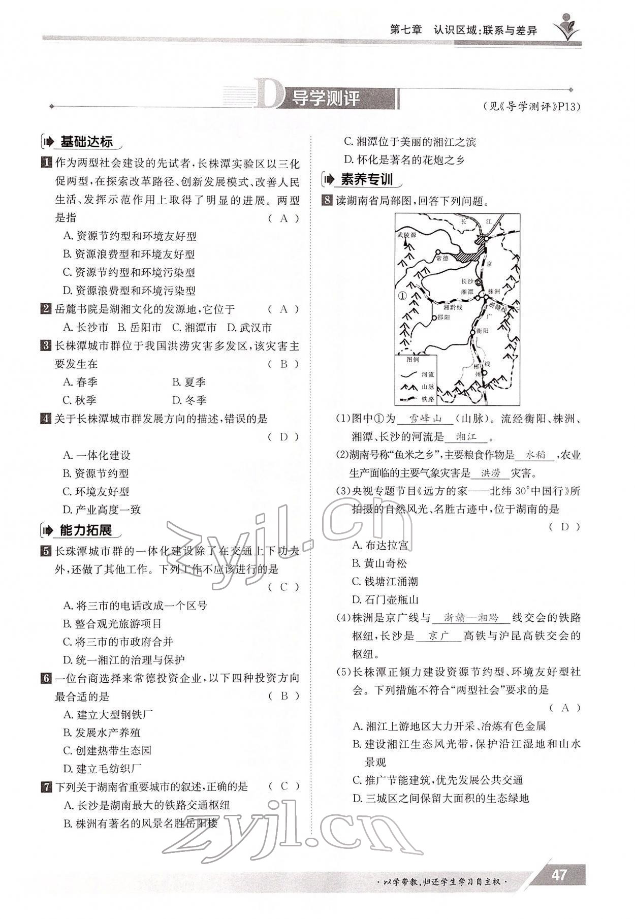 2022年金太阳导学测评八年级地理下册湘教版