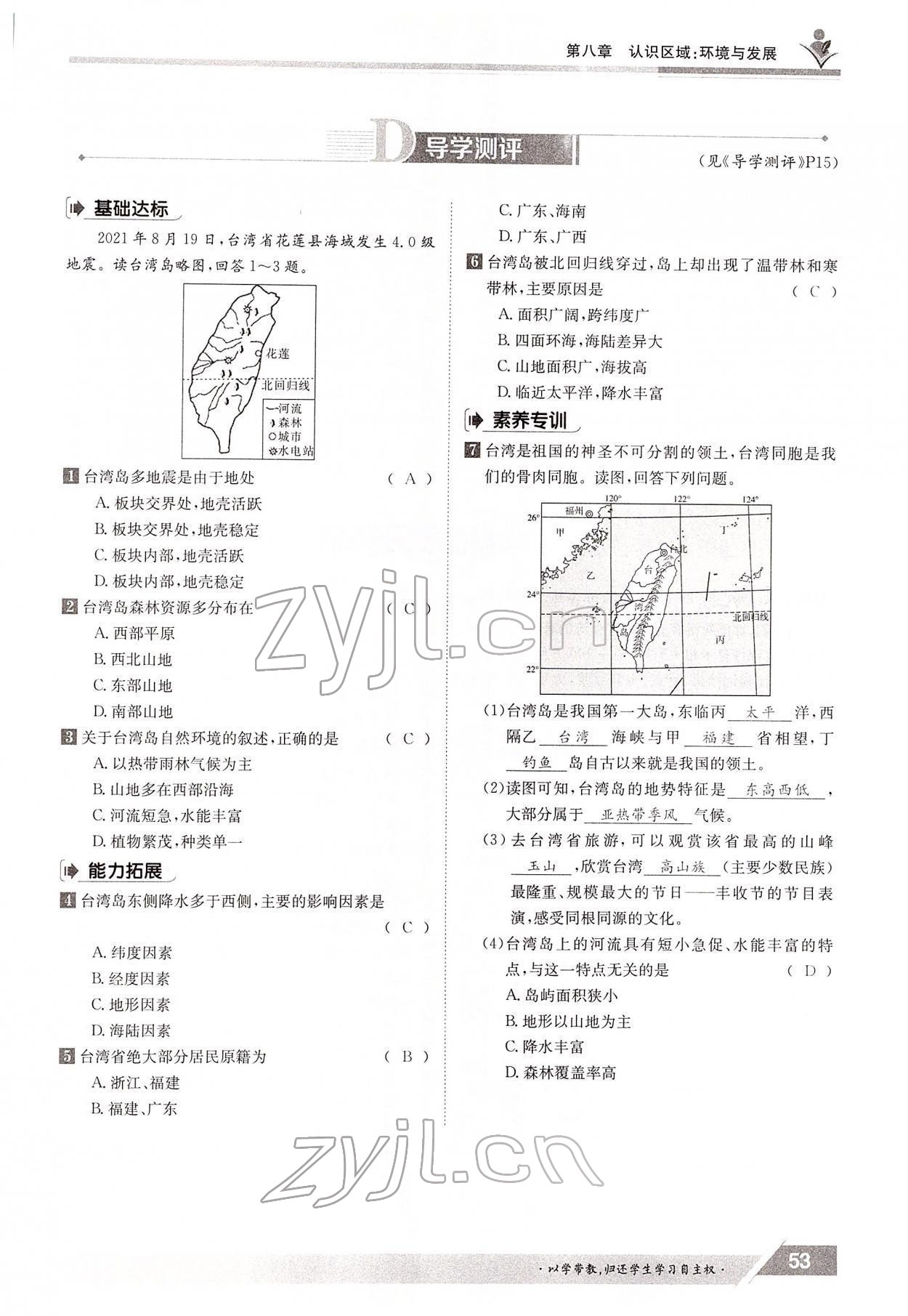 2022年金太阳导学测评八年级地理下册湘教版