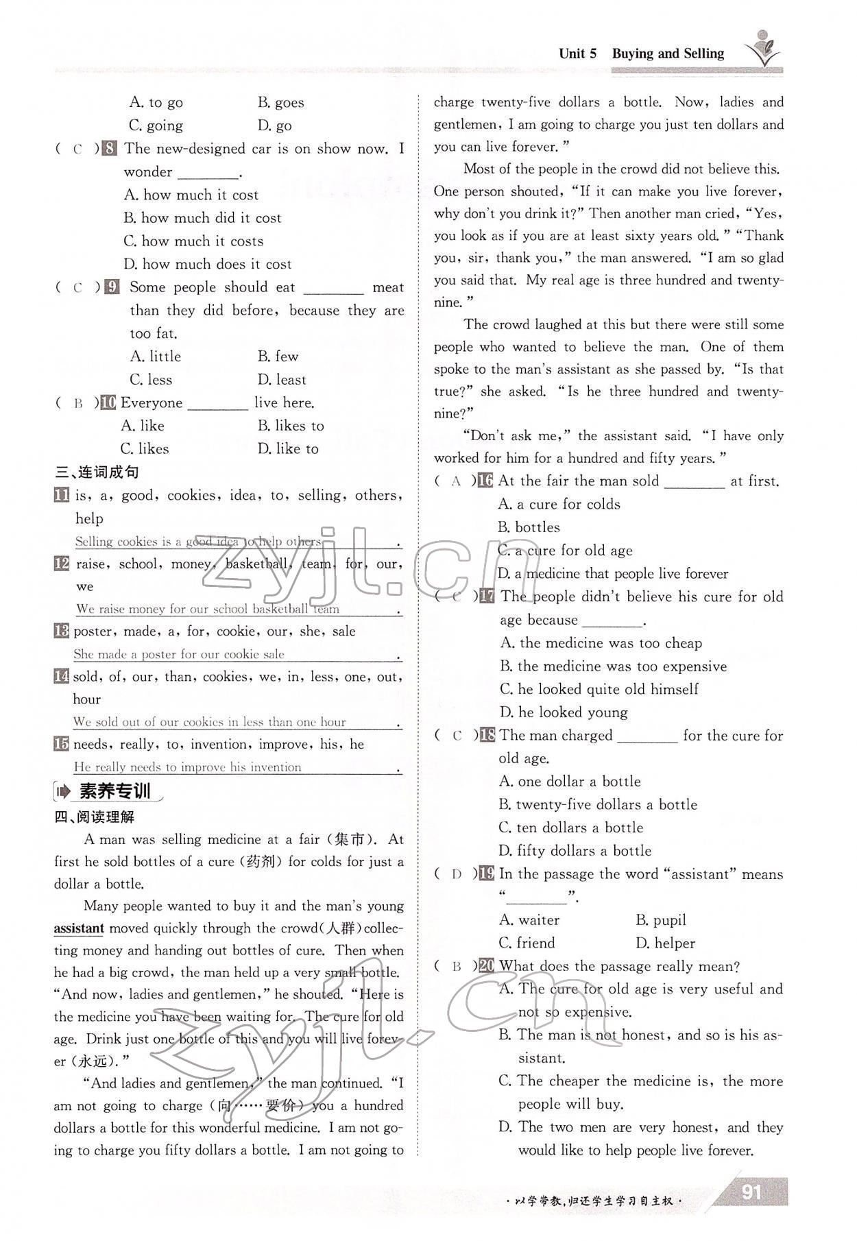 - 参考答案第91页
