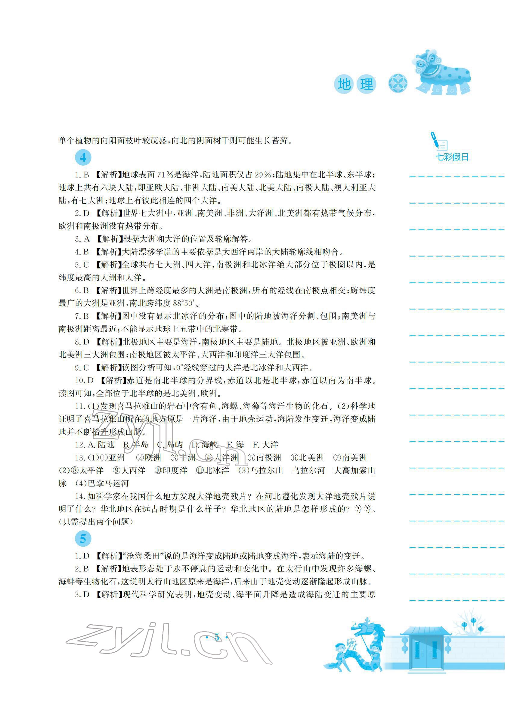注:目前有些书本章节名称可能整理的还不是很完善,但都是按照顺序排列的,请同学们按照顺序仔细查找。练习册 2022年寒假作业安徽教育出版社七年级地理人教版 答案主要是用来给同学们做完题方便对答案用的,请勿直接抄袭。