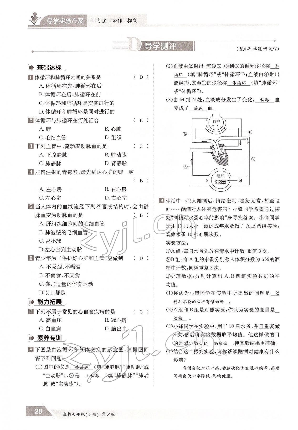 注:目前有些书本章节名称可能整理的还不是很完善,但都是按照顺序排列的,请同学们按照顺序仔细查找。练习册 2022年金太阳导学测评七年级生物下册冀少版 答案主要是用来给同学们做完题方便对答案用的,请勿直接抄袭。