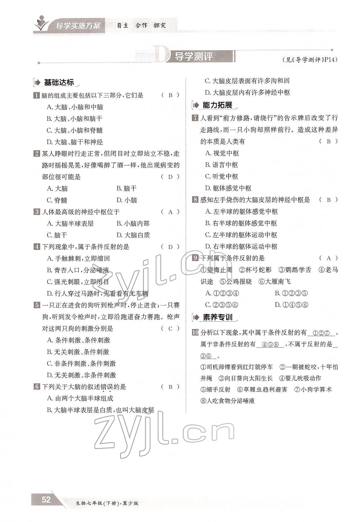 注:目前有些书本章节名称可能整理的还不是很完善,但都是按照顺序排列的,请同学们按照顺序仔细查找。练习册 2022年金太阳导学测评七年级生物下册冀少版 答案主要是用来给同学们做完题方便对答案用的,请勿直接抄袭。
