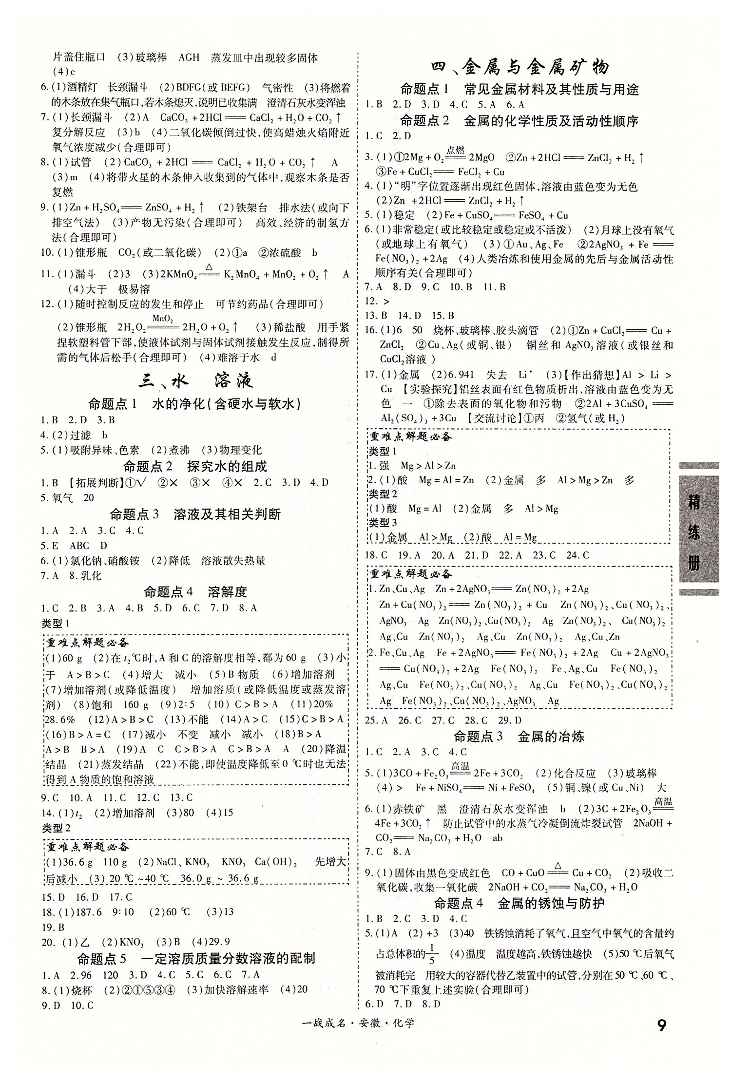 注:目前有些书本章节名称可能整理的还不是很完善,但都是按照顺序排列的,请同学们按照顺序仔细查找。练习册 2022年一战成名考前新方案化学安徽专版 答案主要是用来给同学们做完题方便对答案用的,请勿直接抄袭。