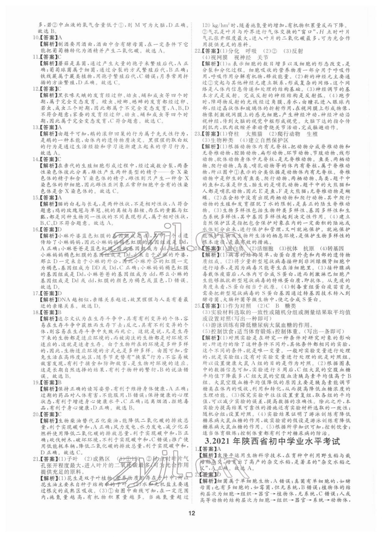 注:目前有些书本章节名称可能整理的还不是很完善,但都是按照顺序排列的,请同学们按照顺序仔细查找。练习册 2022年首席中考专题集训加真题汇编生物 答案主要是用来给同学们做完题方便对答案用的,请勿直接抄袭。