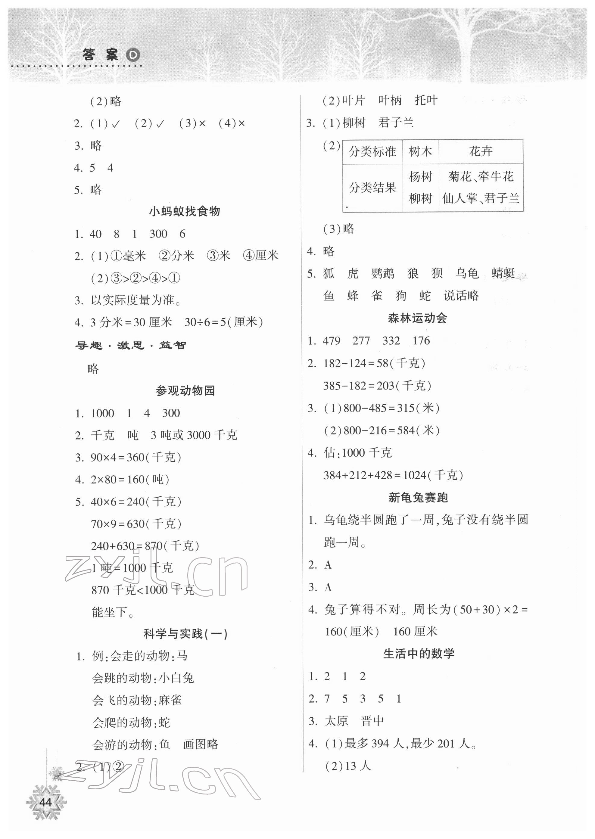 注:目前有些书本章节名称可能整理的还不是很完善,但都是按照顺序排列的,请同学们按照顺序仔细查找。练习册 2022年寒假作业本希望出版社三年级数学人教版 答案主要是用来给同学们做完题方便对答案用的,请勿直接抄袭。
