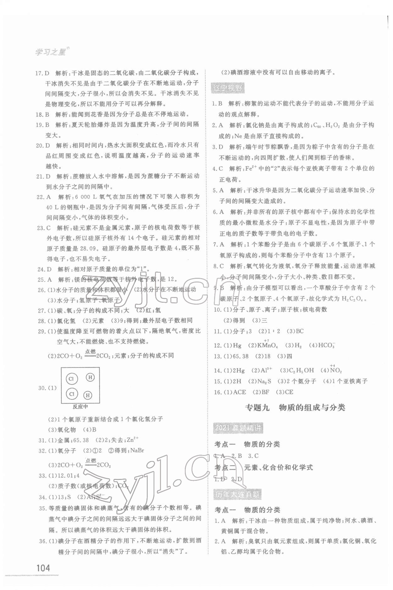 注:目前有些书本章节名称可能整理的还不是很完善,但都是按照顺序排列的,请同学们按照顺序仔细查找。练习册 2022年备考化学大连中考 答案主要是用来给同学们做完题方便对答案用的,请勿直接抄袭。