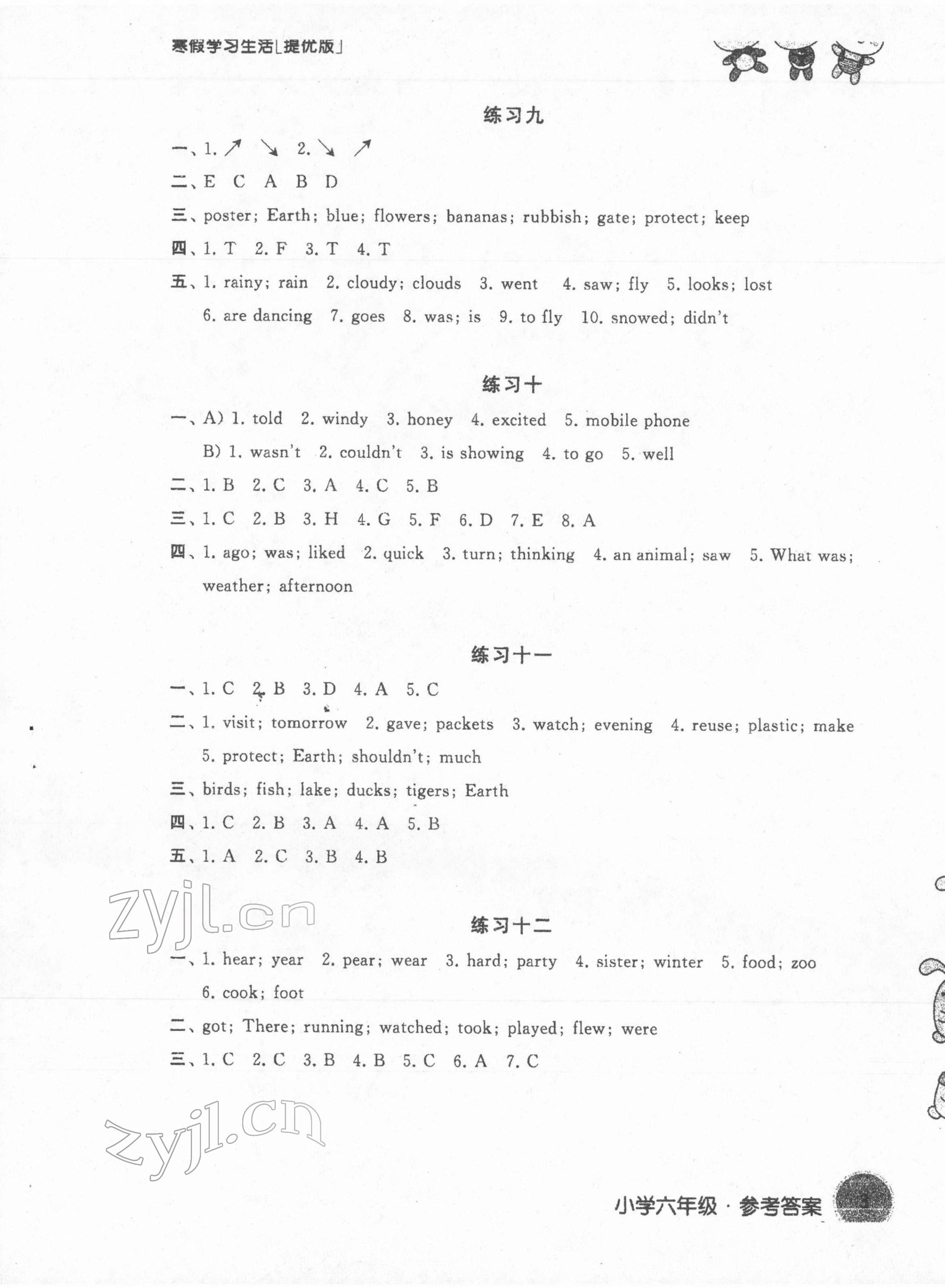注:目前有些书本章节名称可能整理的还不是很完善,但都是按照顺序排列的,请同学们按照顺序仔细查找。练习册 2022年寒假学习生活六年级英语提优版 答案主要是用来给同学们做完题方便对答案用的,请勿直接抄袭。