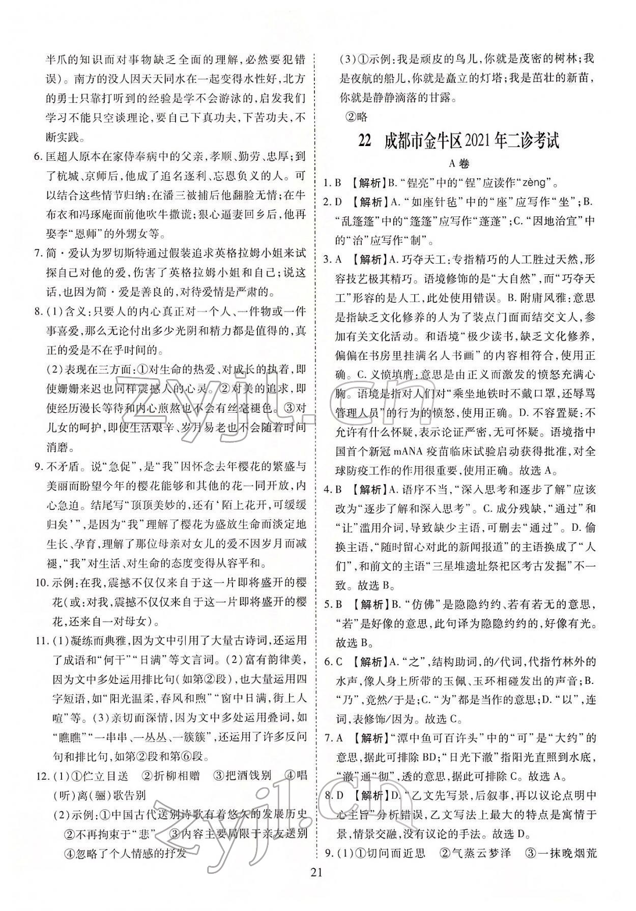 注:目前有些书本章节名称可能整理的还不是很完善,但都是按照顺序排列的,请同学们按照顺序仔细查找。练习册 2022年中考金卷中考试题精编语文成都专版 答案主要是用来给同学们做完题方便对答案用的,请勿直接抄袭。