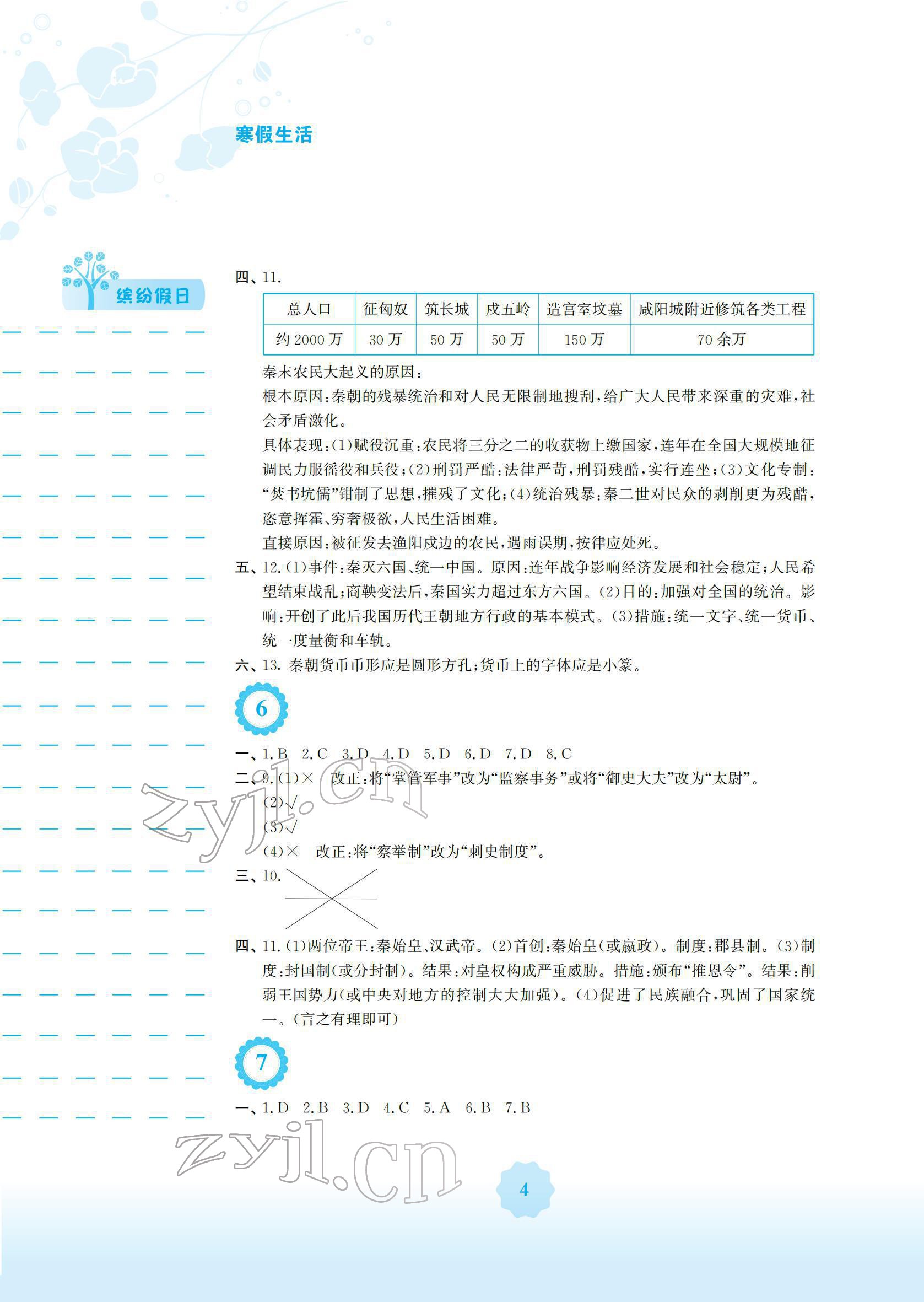 《2022年寒假生活七年级历史人教版安徽教育出版社》