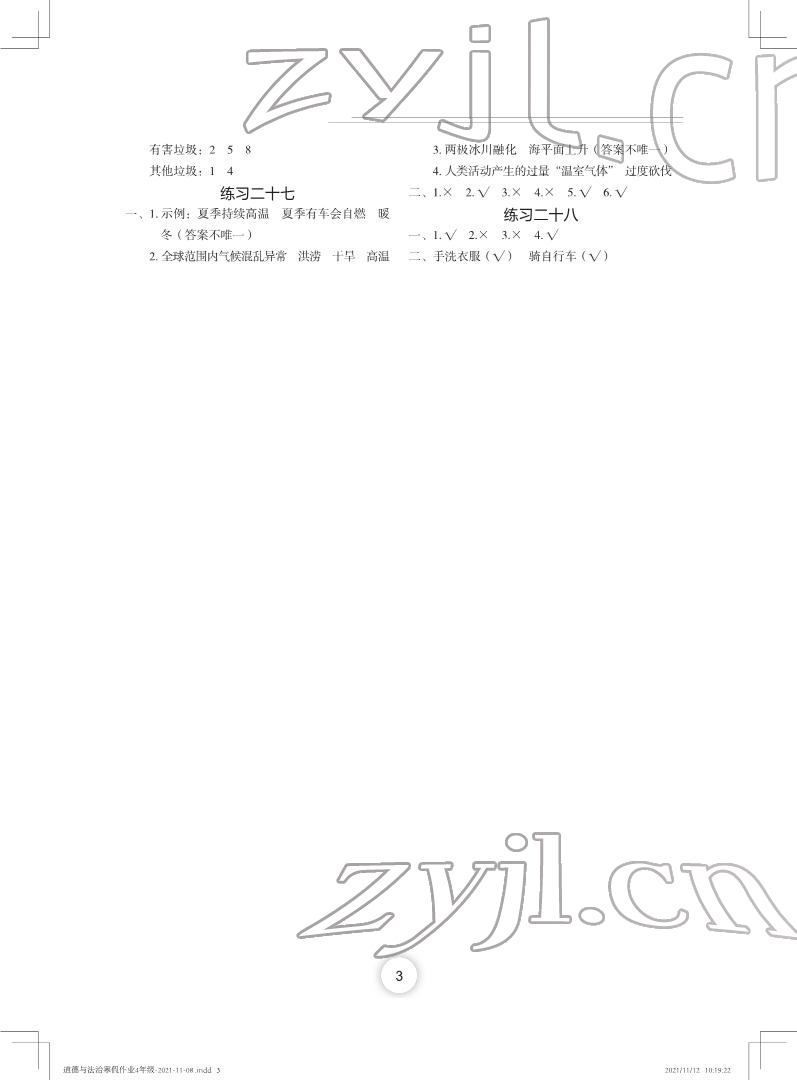 《2022年寒假作业四年级道德与法治人教版长江少年儿童出版社》
