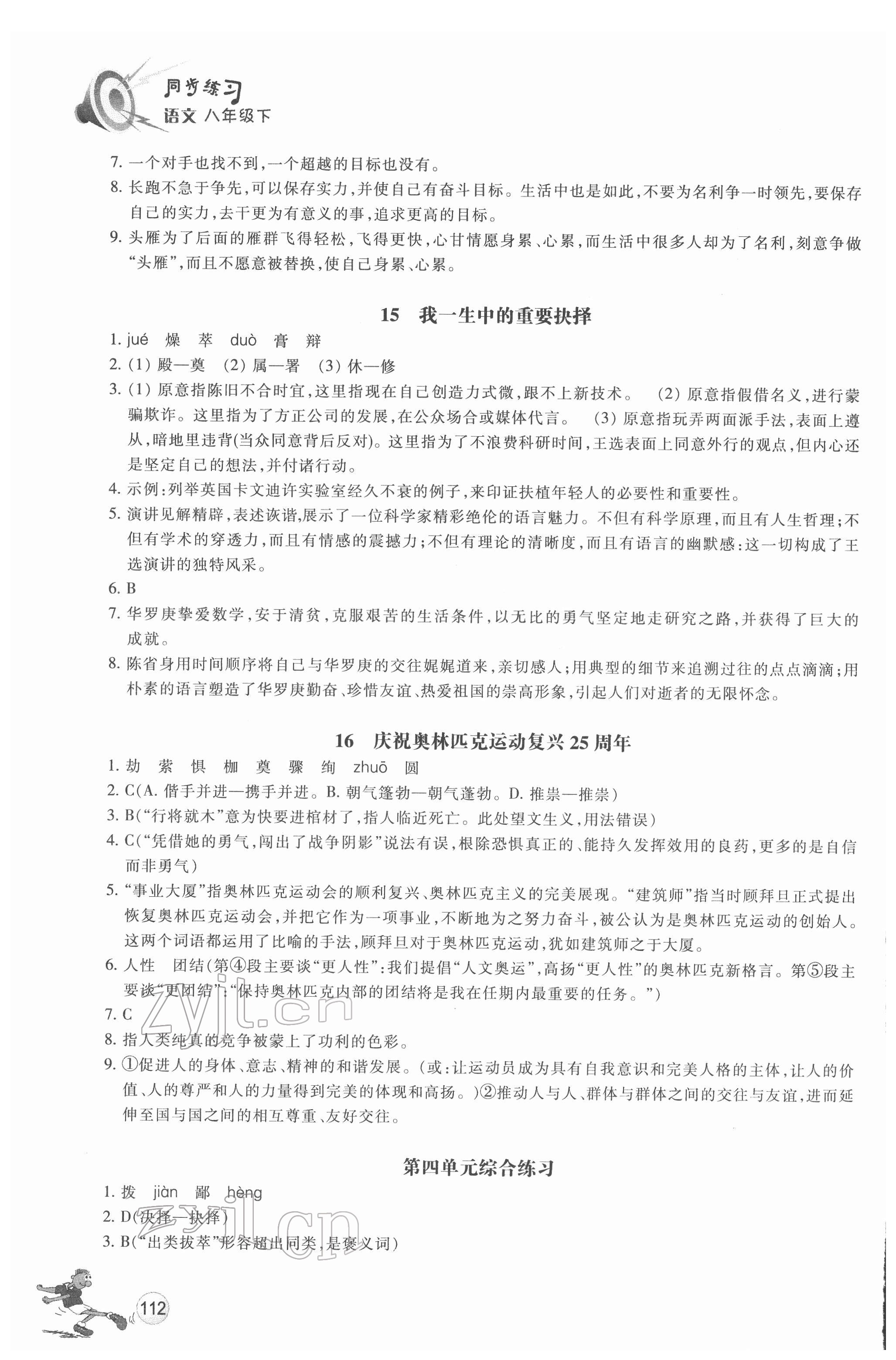 注:目前有些书本章节名称可能整理的还不是很完善,但都是按照顺序排列的,请同学们按照顺序仔细查找。练习册 2022年同步练习浙江教育出版社八年级语文下册人教版 答案主要是用来给同学们做完题方便对答案用的,请勿直接抄袭。
