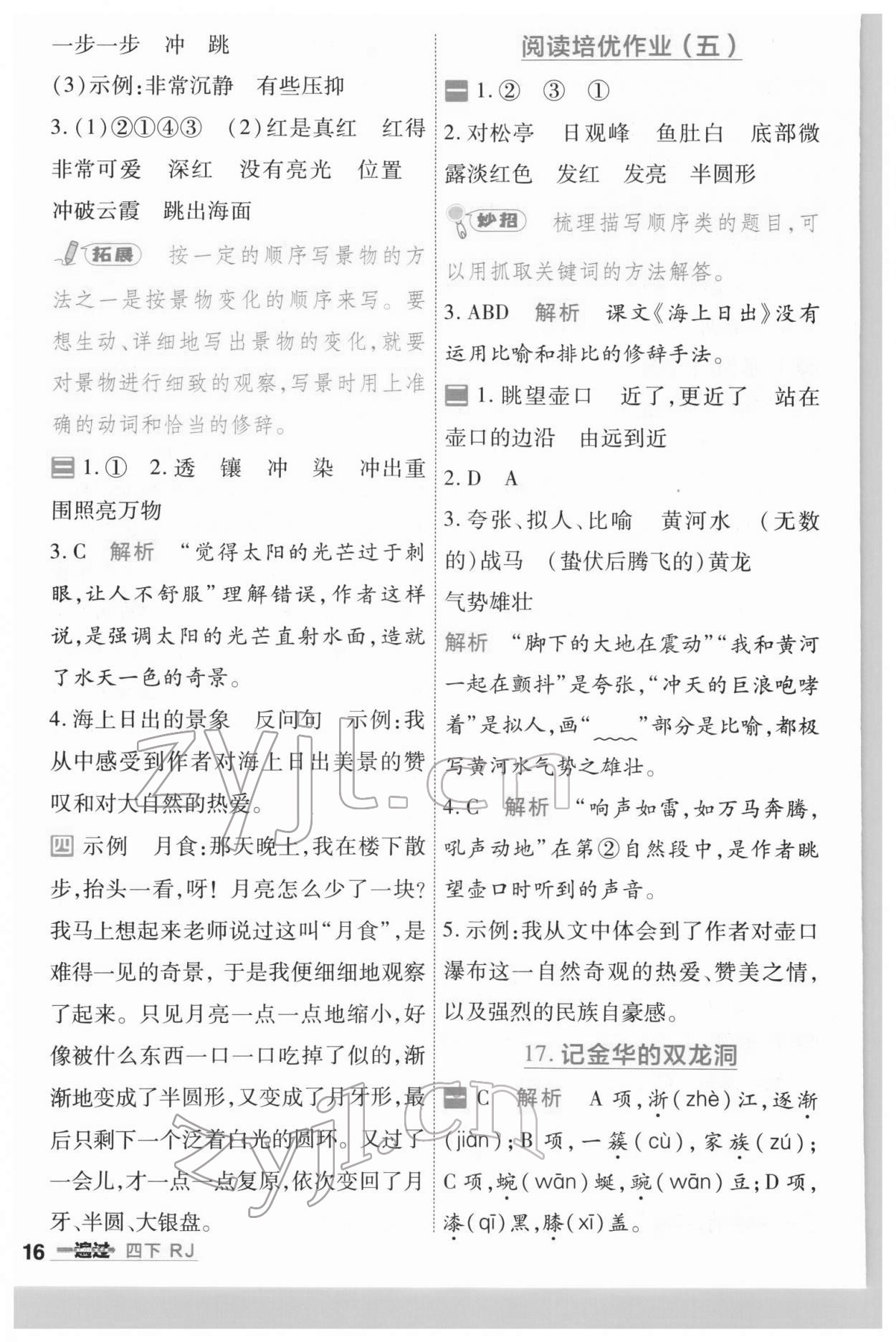 注:目前有些书本章节名称可能整理的还不是很完善,但都是按照顺序排列的,请同学们按照顺序仔细查找。练习册 2022年一遍过四年级语文下册人教版河南专版 答案主要是用来给同学们做完题方便对答案用的,请勿直接抄袭。