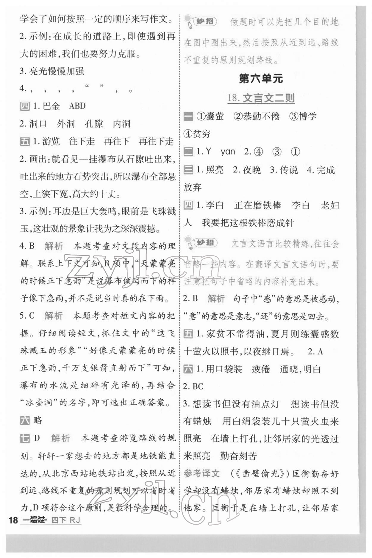 注:目前有些书本章节名称可能整理的还不是很完善,但都是按照顺序排列的,请同学们按照顺序仔细查找。练习册 2022年一遍过四年级语文下册人教版河南专版 答案主要是用来给同学们做完题方便对答案用的,请勿直接抄袭。