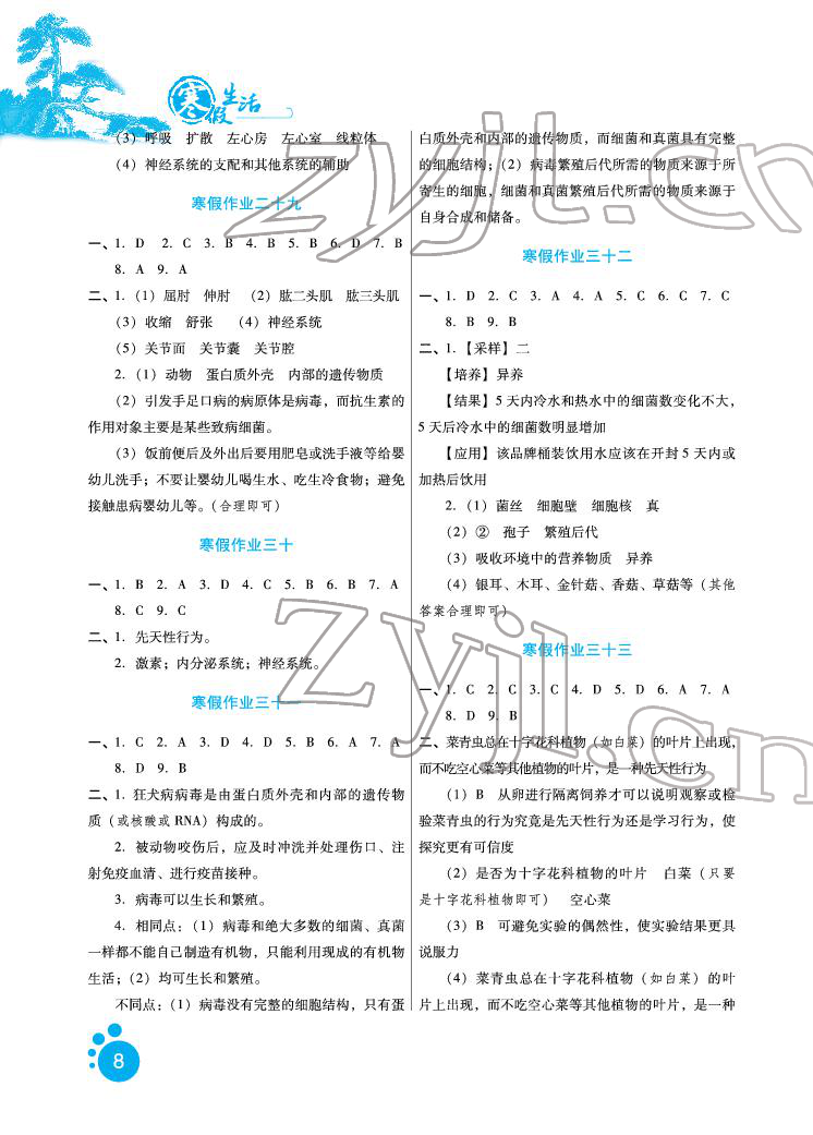 2022年寒假生活八年级合订本河北少年儿童出版社