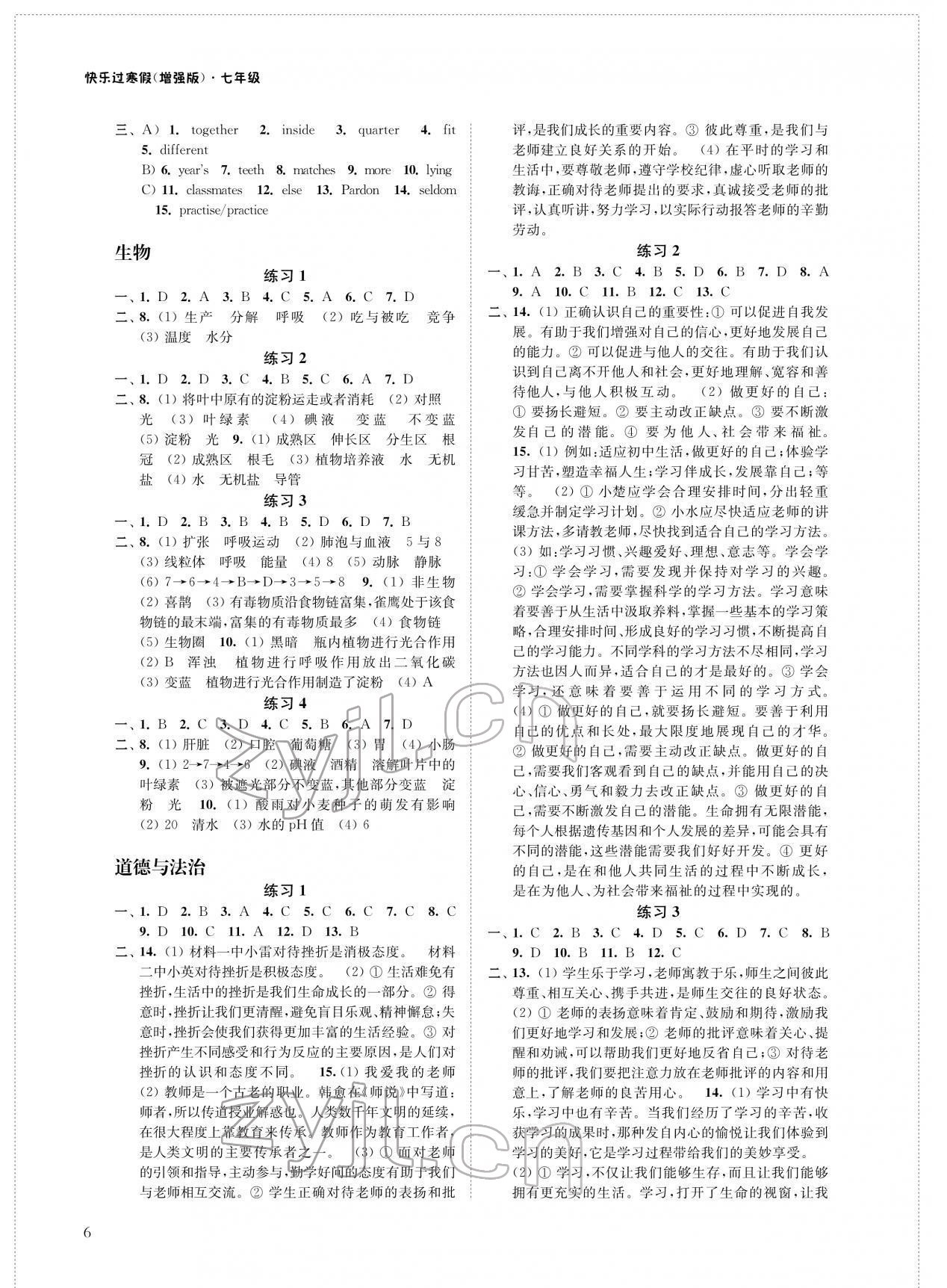 注:目前有些书本章节名称可能整理的还不是很完善,但都是按照顺序排列的,请同学们按照顺序仔细查找。练习册 2022年快乐过寒假七年级增强版 答案主要是用来给同学们做完题方便对答案用的,请勿直接抄袭。