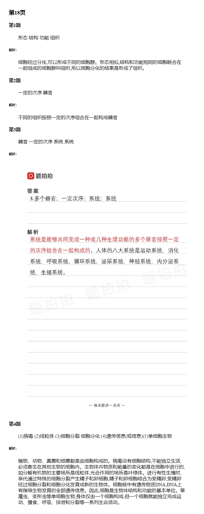 注:目前有些书本章节名称可能整理的还不是很完善,但都是按照顺序排列的,请同学们按照顺序仔细查找。练习册 2022年寒假生活七年级生物苏教版安徽教育出版社 答案主要是用来给同学们做完题方便对答案用的,请勿直接抄袭。