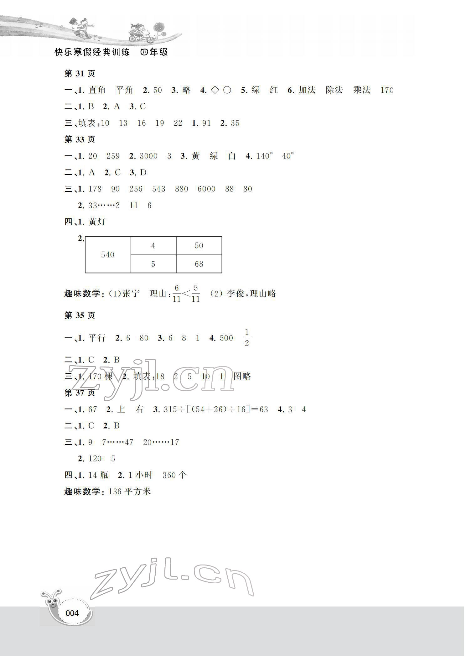 注:目前有些书本章节名称可能整理的还不是很完善,但都是按照顺序排列的,请同学们按照顺序仔细查找。练习册 2022年快乐寒假经典训练四年级数学 答案主要是用来给同学们做完题方便对答案用的,请勿直接抄袭。