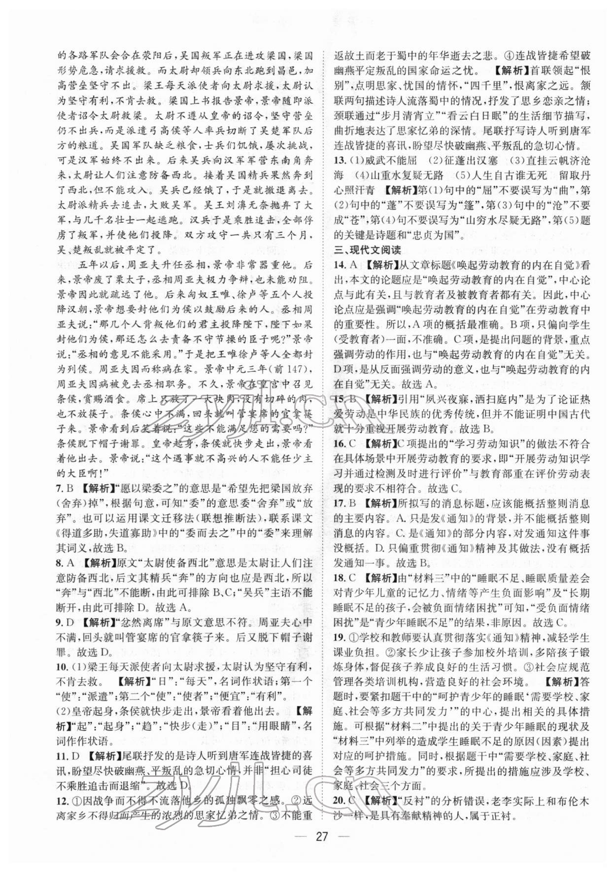 注:目前有些书本章节名称可能整理的还不是很完善,但都是按照顺序排列的,请同学们按照顺序仔细查找。练习册 2022年中考必备语文南方出版社 答案主要是用来给同学们做完题方便对答案用的,请勿直接抄袭。