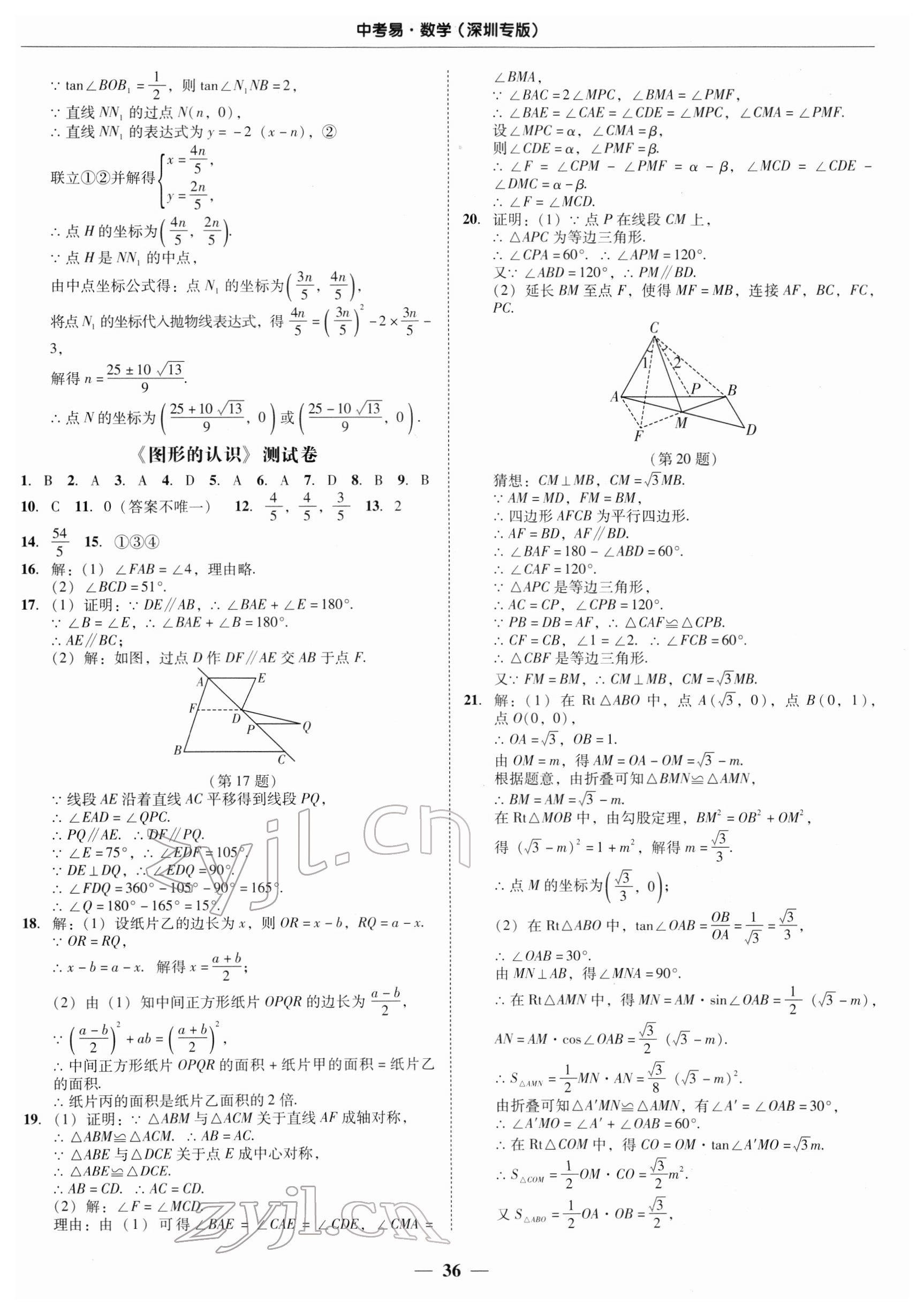 注:目前有些书本章节名称可能整理的还不是很完善,但都是按照顺序排列的,请同学们按照顺序仔细查找。练习册 2022年中考易数学深圳专版 答案主要是用来给同学们做完题方便对答案用的,请勿直接抄袭。
