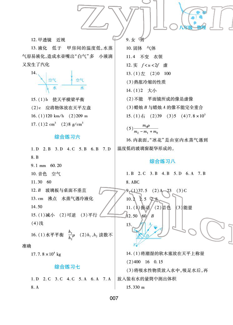 注:目前有些书本章节名称可能整理的还不是很完善,但都是按照顺序排列的,请同学们按照顺序仔细查找。练习册 2022年寒假综合练习八年级物理 答案主要是用来给同学们做完题方便对答案用的,请勿直接抄袭。