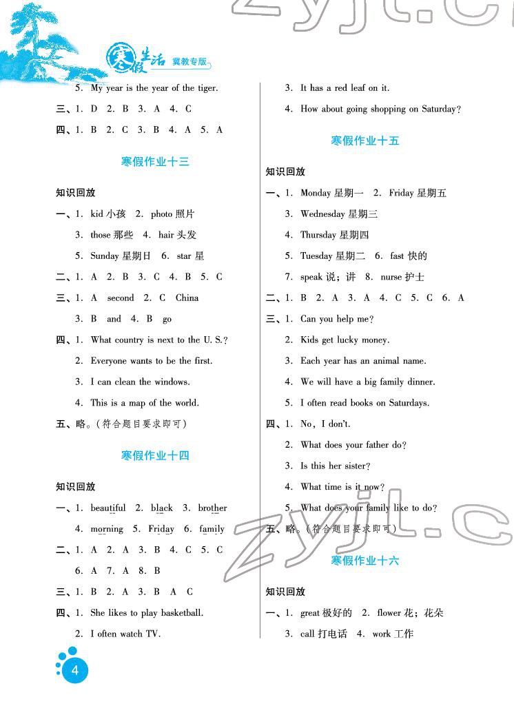 《2022年寒假生活五年级英语冀教版河北人民出版社》