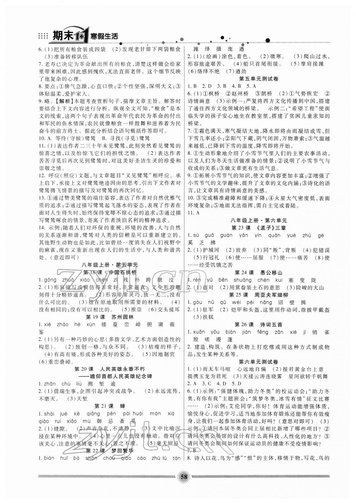 2022年寒假生活八年级语文人教版新疆文化出版社