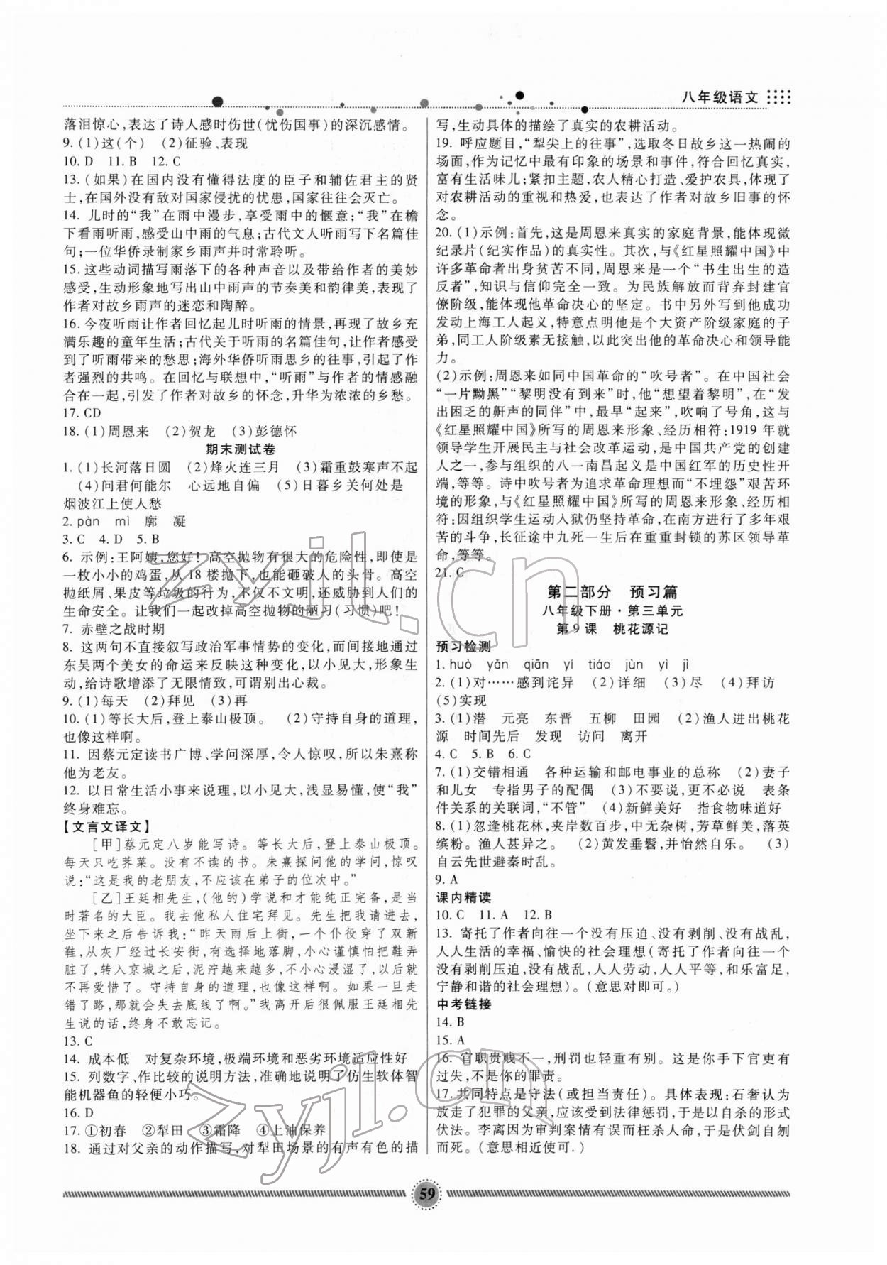 2022年寒假生活八年级语文人教版新疆文化出版社
