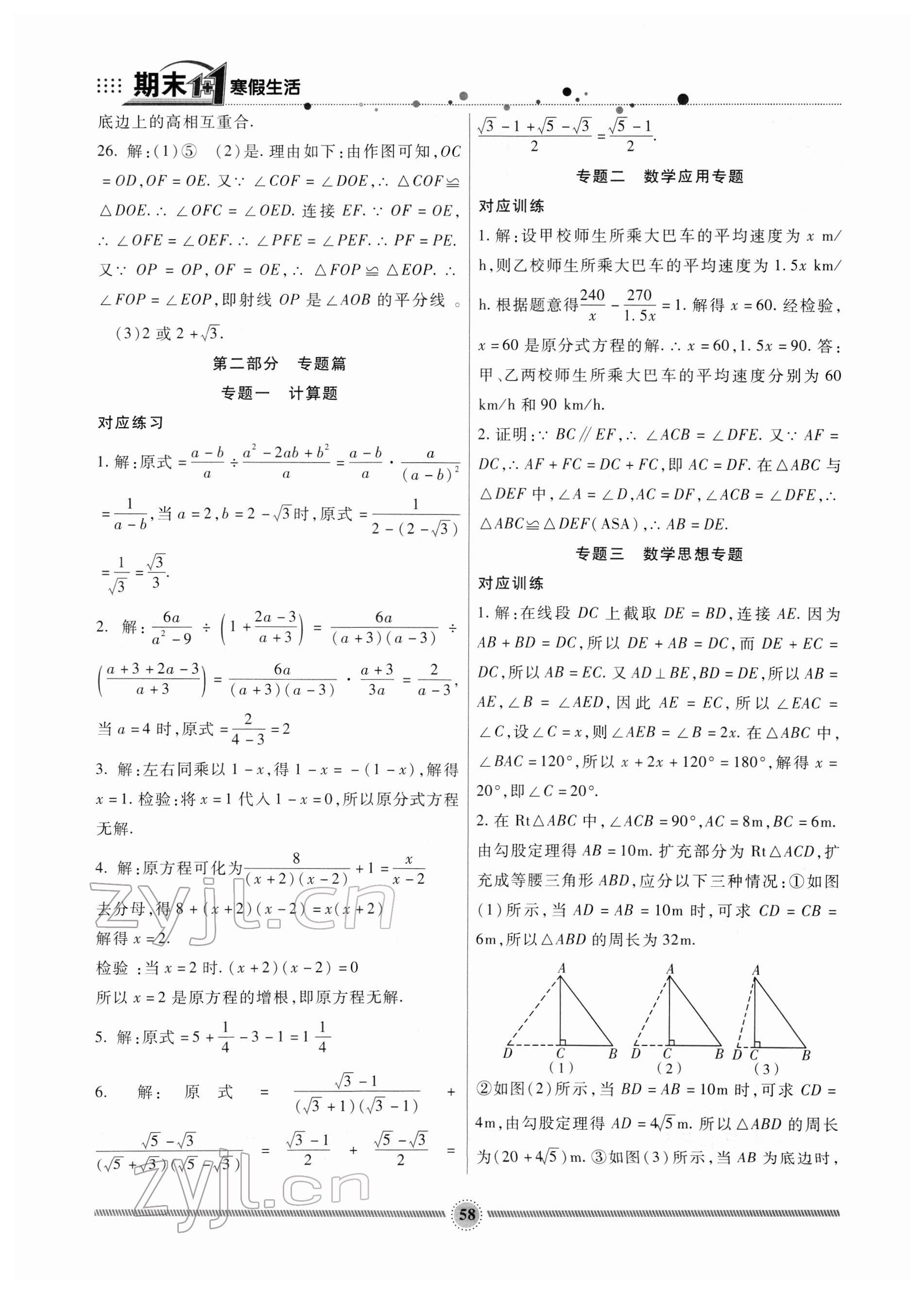 2022年寒假生活八年级数学冀教版新疆文化出版社