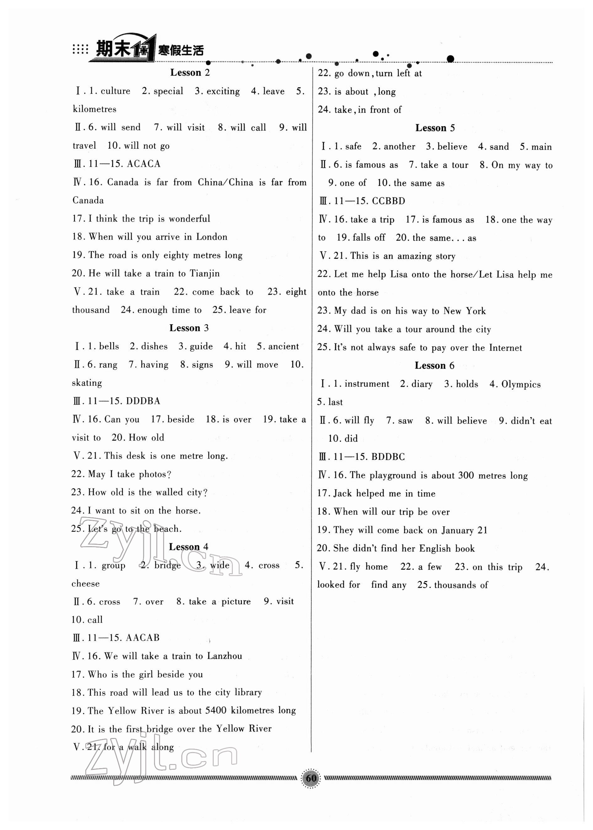 注:目前有些书本章节名称可能整理的还不是很完善,但都是按照顺序排列的,请同学们按照顺序仔细查找。练习册 2022年寒假生活七年级英语冀教版新疆文化出版社 答案主要是用来给同学们做完题方便对答案用的,请勿直接抄袭。
