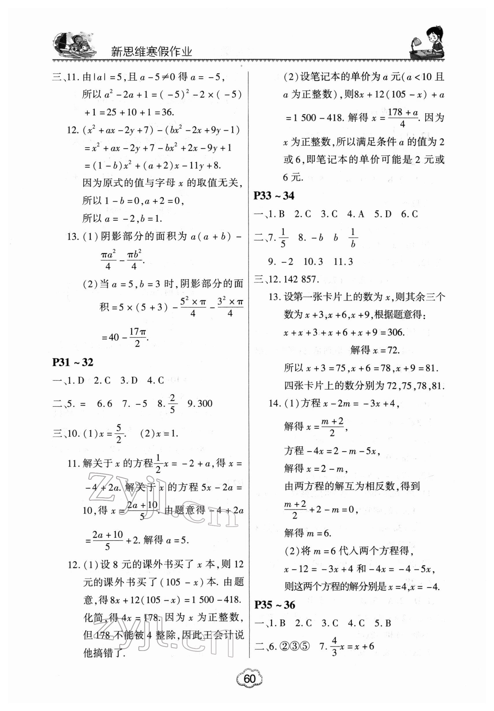 注:目前有些书本章节名称可能整理的还不是很完善,但都是按照顺序排列的,请同学们按照顺序仔细查找。练习册 2022年新思维寒假作业七年级数学人教版 答案主要是用来给同学们做完题方便对答案用的,请勿直接抄袭。