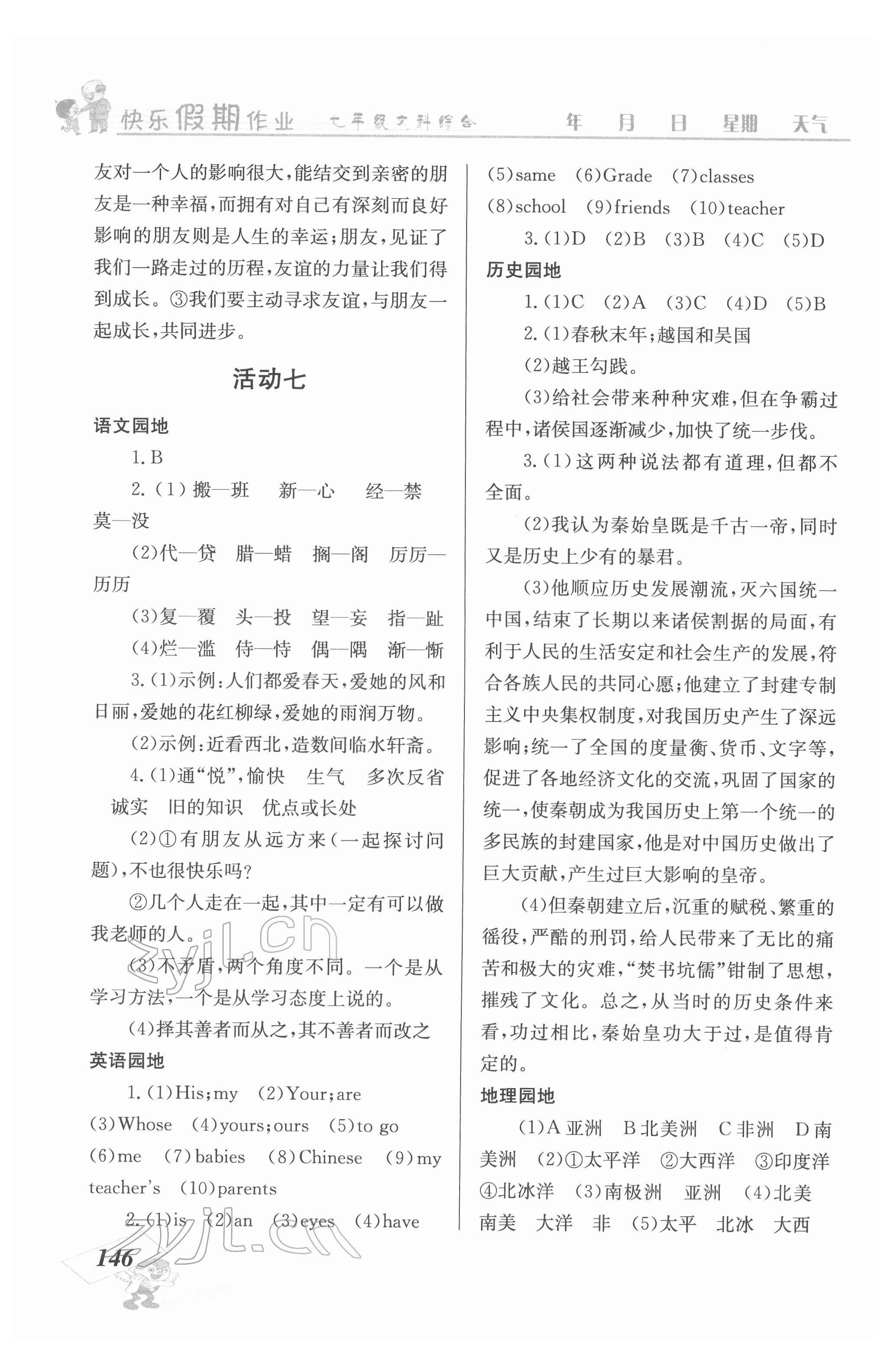 2022年创新成功学习快乐暑假七年级文科综合云南科技出版社