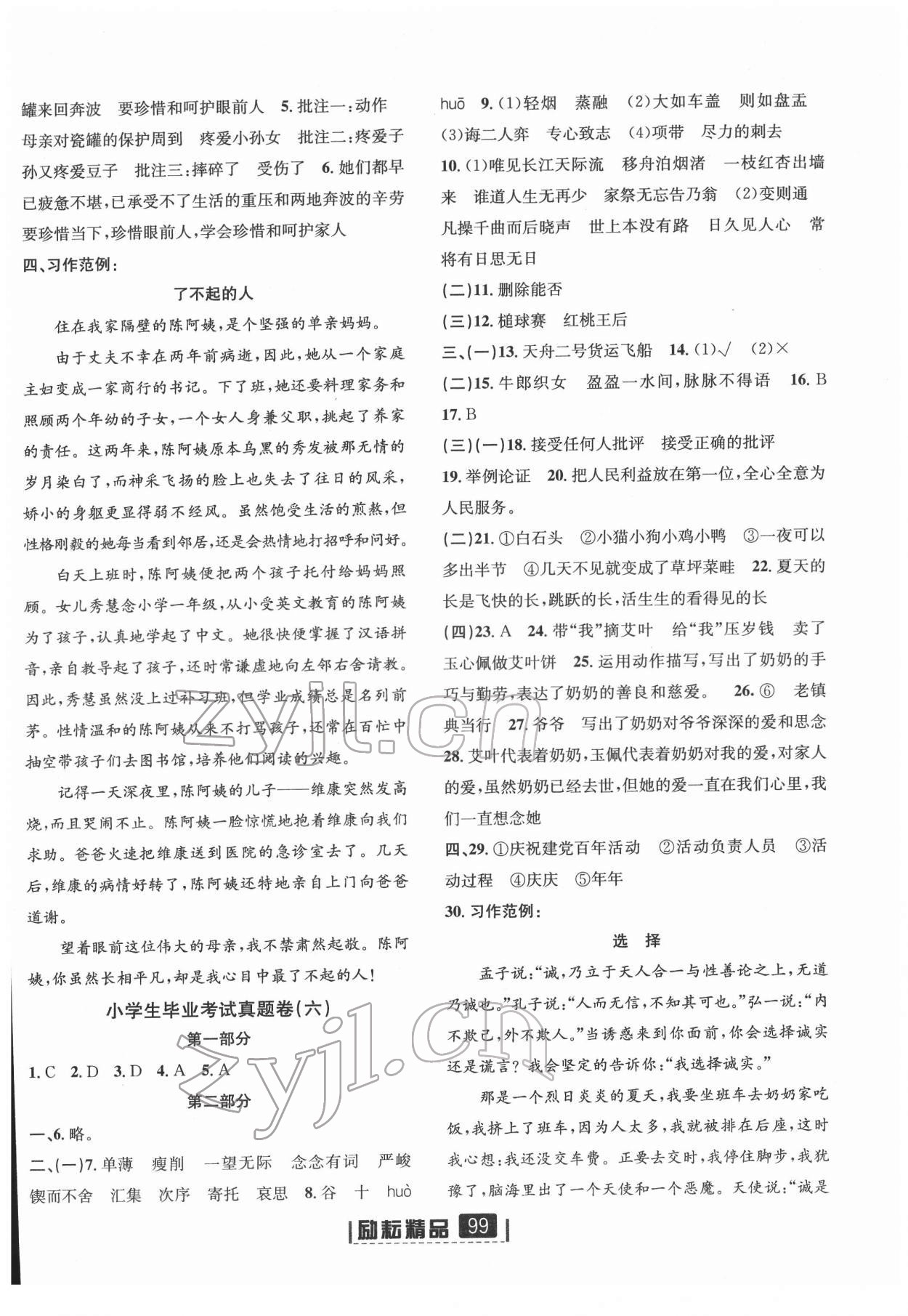 注:目前有些书本章节名称可能整理的还不是很完善,但都是按照顺序排列的,请同学们按照顺序仔细查找。练习册 2022年励耘小考助跑卷六年级语文浙江专版 答案主要是用来给同学们做完题方便对答案用的,请勿直接抄袭。