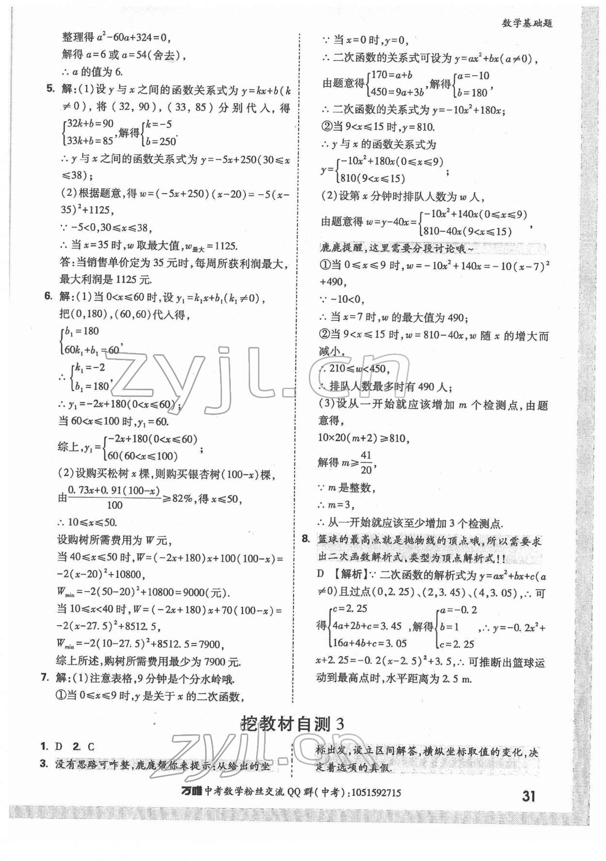 注:目前有些书本章节名称可能整理的还不是很完善,但都是按照顺序排列的,请同学们按照顺序仔细查找。练习册 2022年万唯中考数学基础题 答案主要是用来给同学们做完题方便对答案用的,请勿直接抄袭。